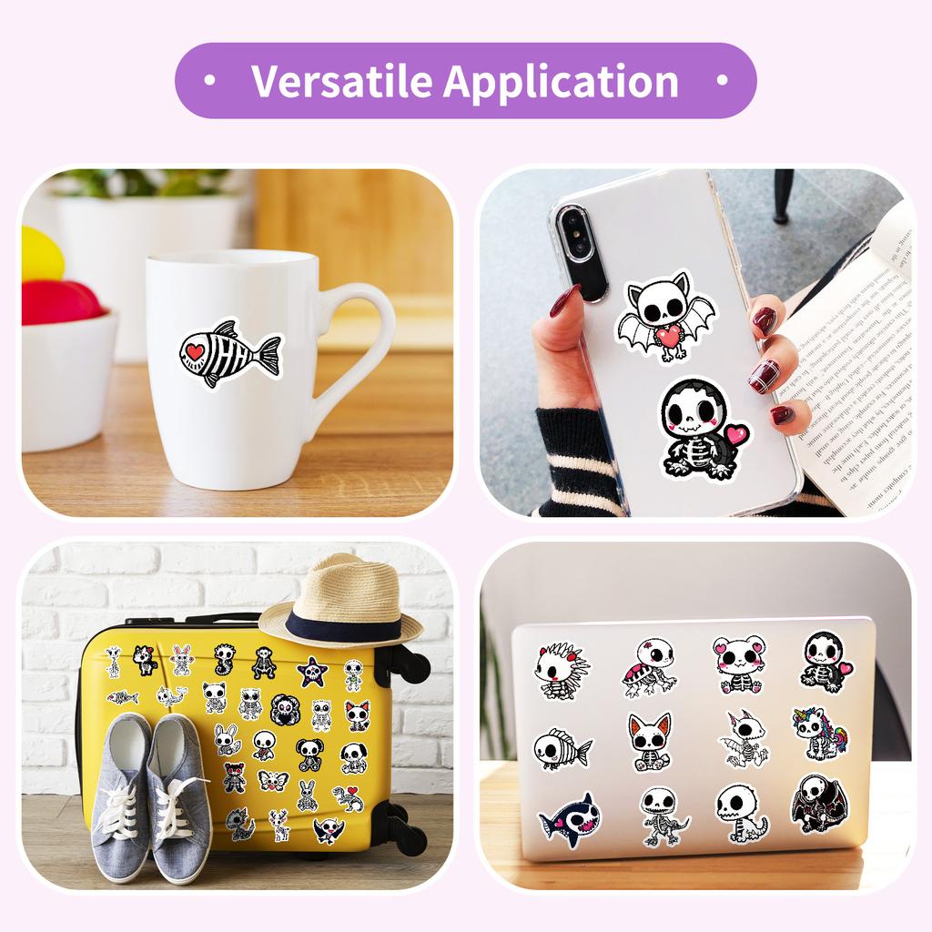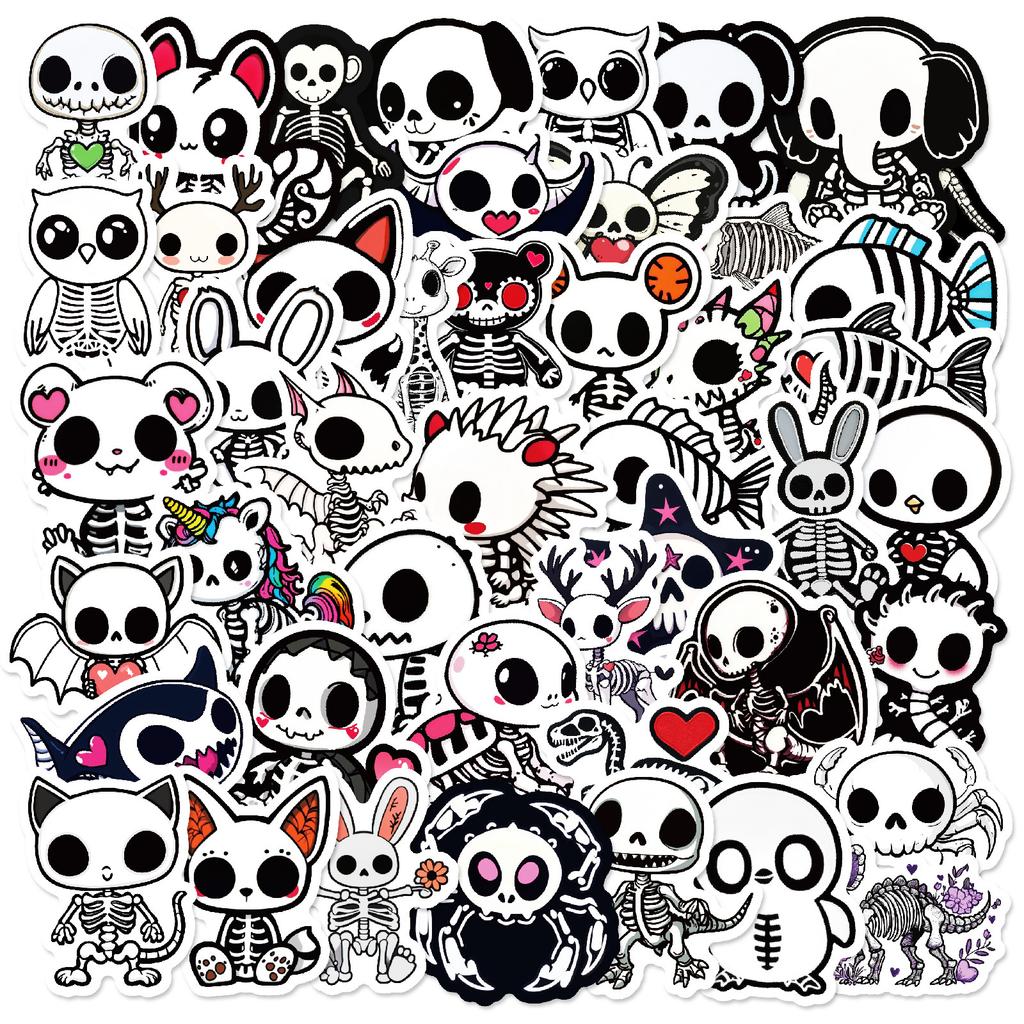 50 шт. Мультяшные наклейки с животными-скелетами, Милые наклейки с черепами для блокнота, журнала, DIY, Водонепроницаемое украшение