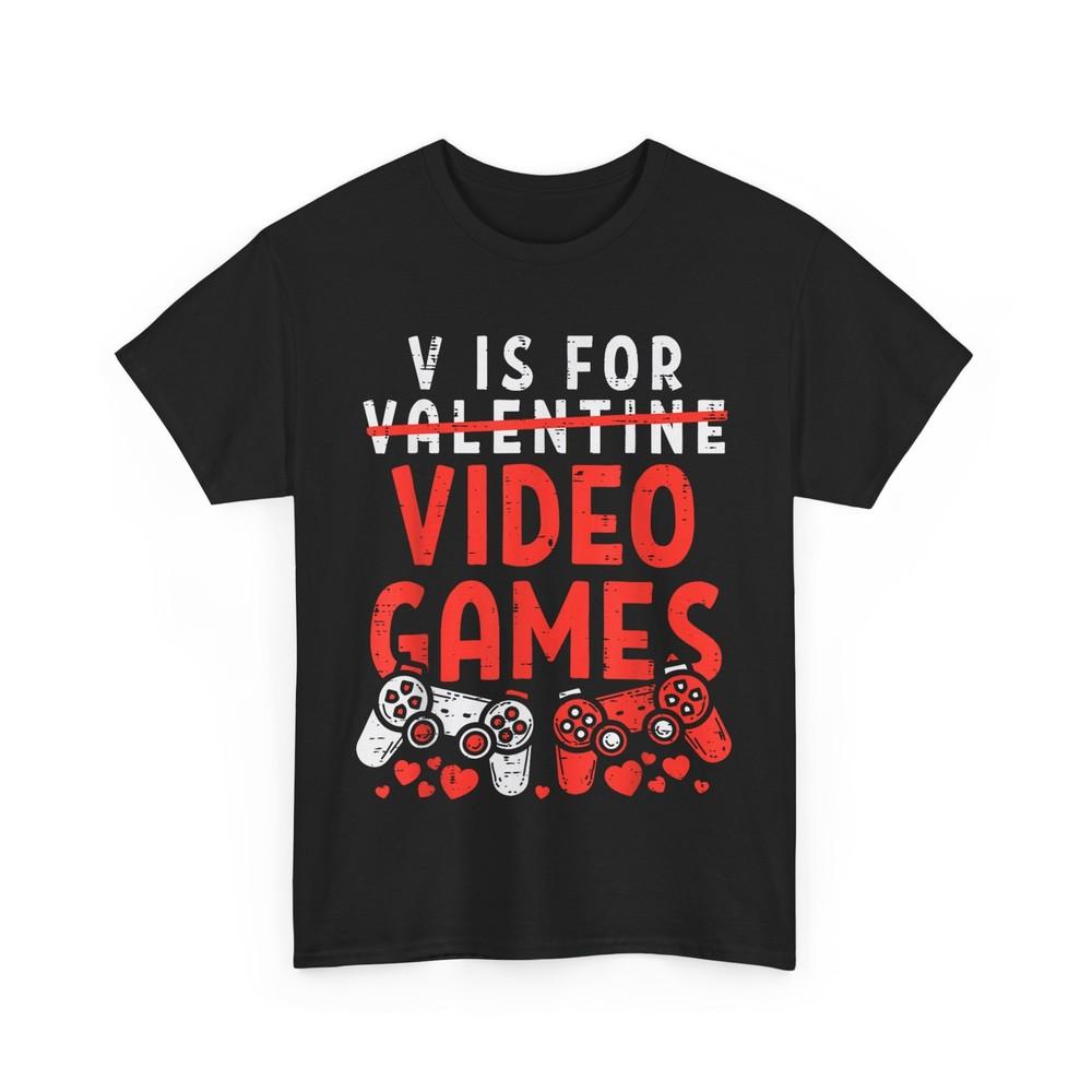 V Is For Video Games Funny Valentines Day Gamer Boy Men Gift T-Shirt