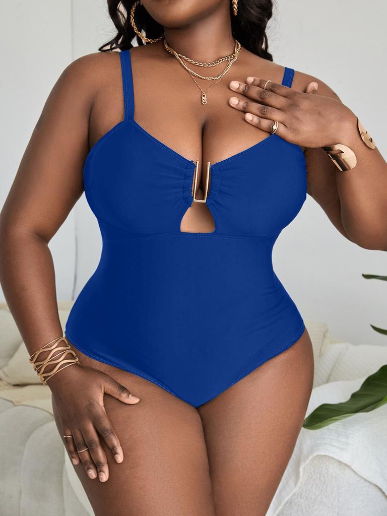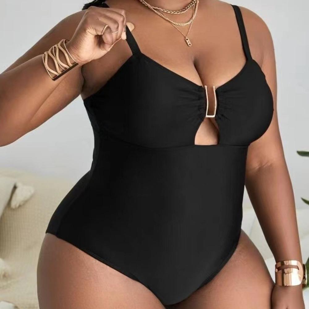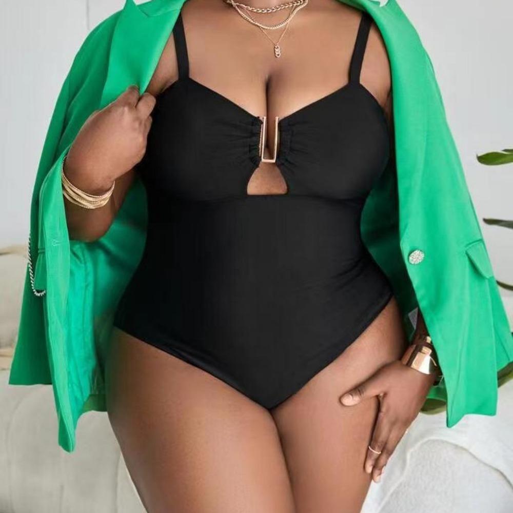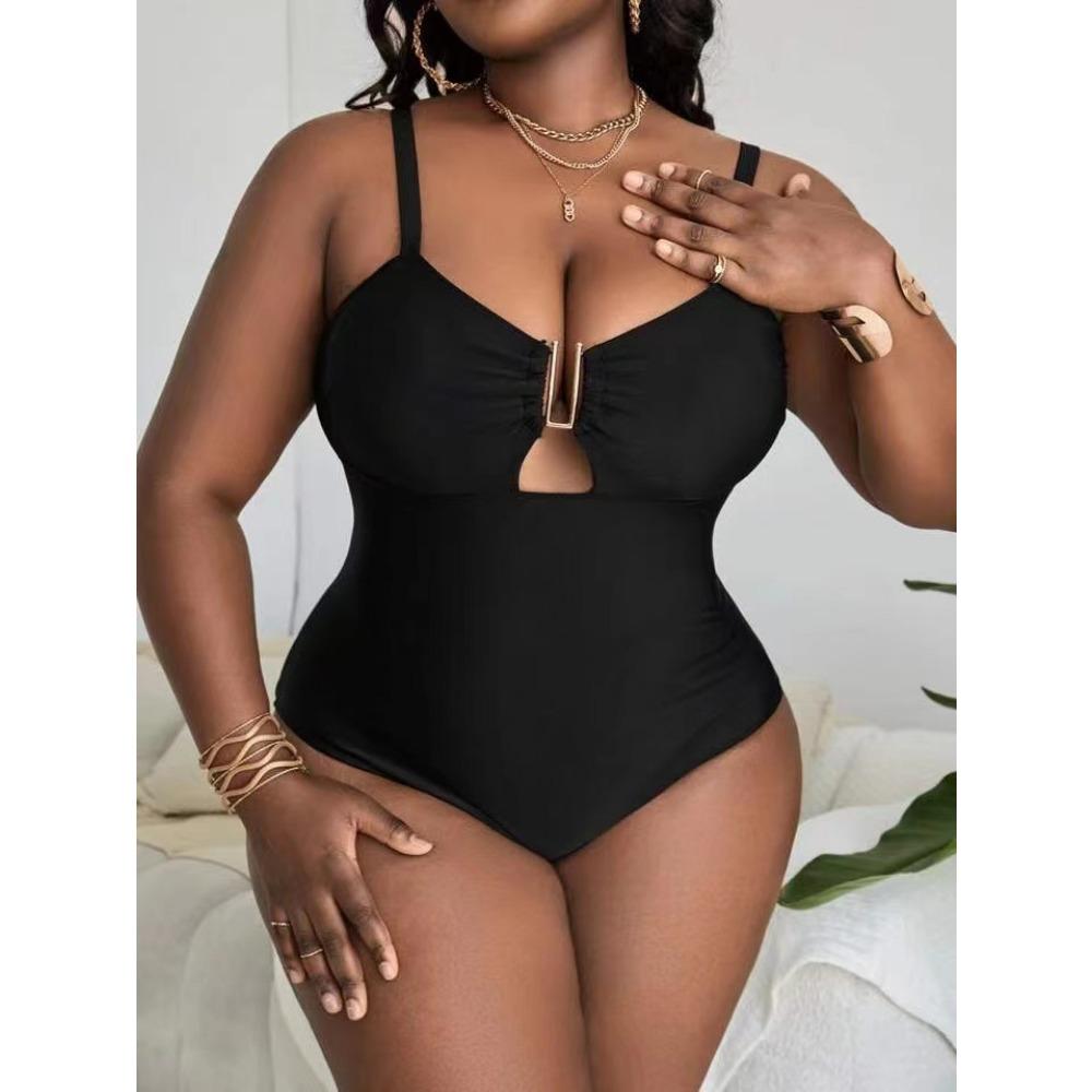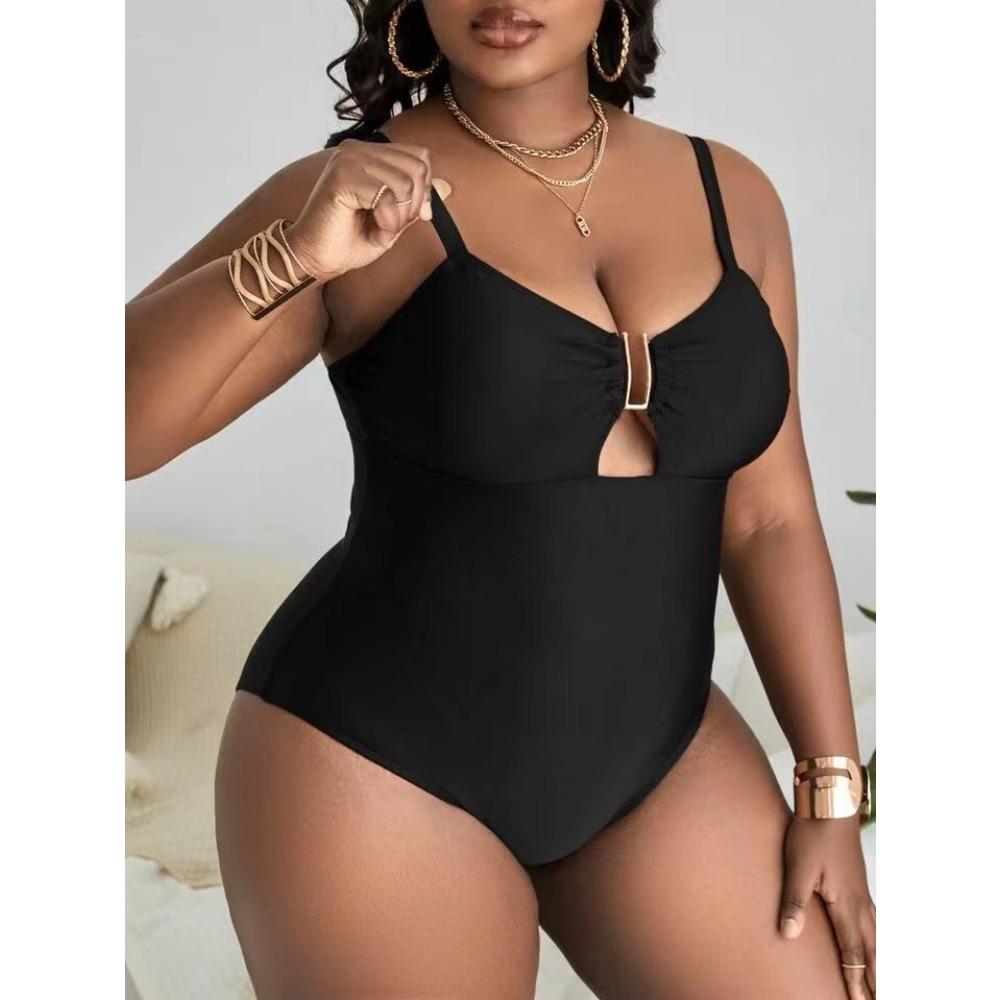 Европейский и американский новый большой размер однотонный полый тонкий тонкий спинка интегрированный купальник сексуальный бикини женщины