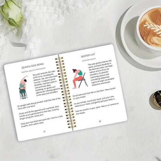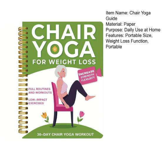 Откройте преобразующую силу йоги на стуле с Книгой-руководством по стулу для йоги для похудения. Это исчерпывающее руководство включает базовые техники осанки, разминочные упражнения, дыхательные техники и разнообразные упражнения на растяжку, адаптированные к индивидуальному уровню подготовки и целям по снижению веса..