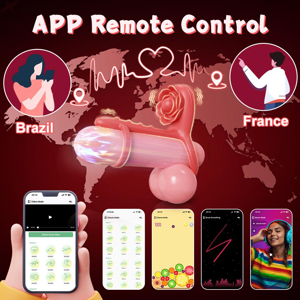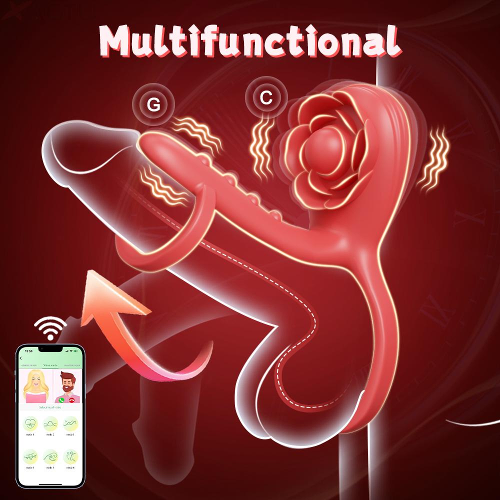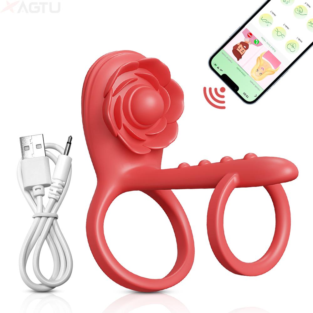 ПРИЛОЖЕНИЕ Rose-Вибрирующие пробки для мужчин Задержка эякуляции Проникновение Член Двойные пенисные кольца Стимулятор промежности Секс-игрушка для мужчин