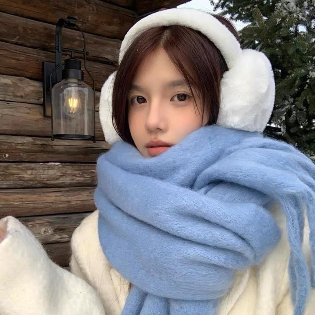 Женский зимний плюшевый длинный шарф с кисточками - Мягкий, теплый, толстый, теплый и ветронепродуваемый шарф, многофункциональный шарф для повседневных прогулок