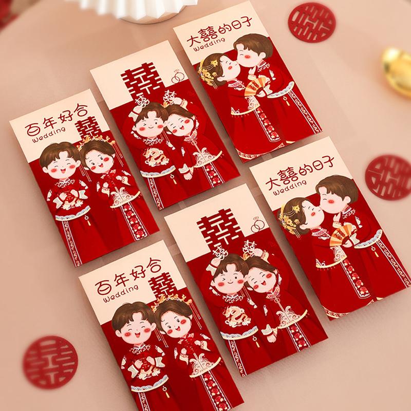 6 шт. традиционный китайский свадебный красный конверт счастливые денежные пакеты благословение красный пакет Хунбао свадебные подарки