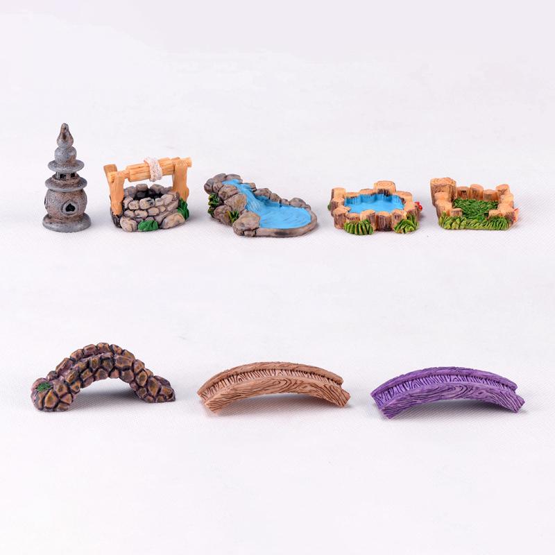 Аксессуары для сада фей Миниатюрные родниковые колодцы Мост Лодка Украшение Статуэтка Фигурки Ландшафтный дизайн Домашний сад Ремесло Декор