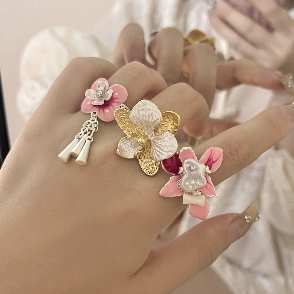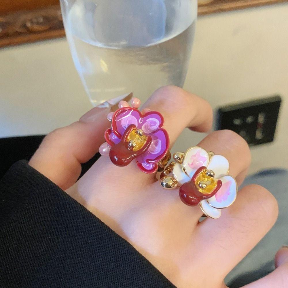 Белый цветок ириса эмалевое кольцо на палец милое французское неровное кольцо капающее масло кольцо с цветком девочки