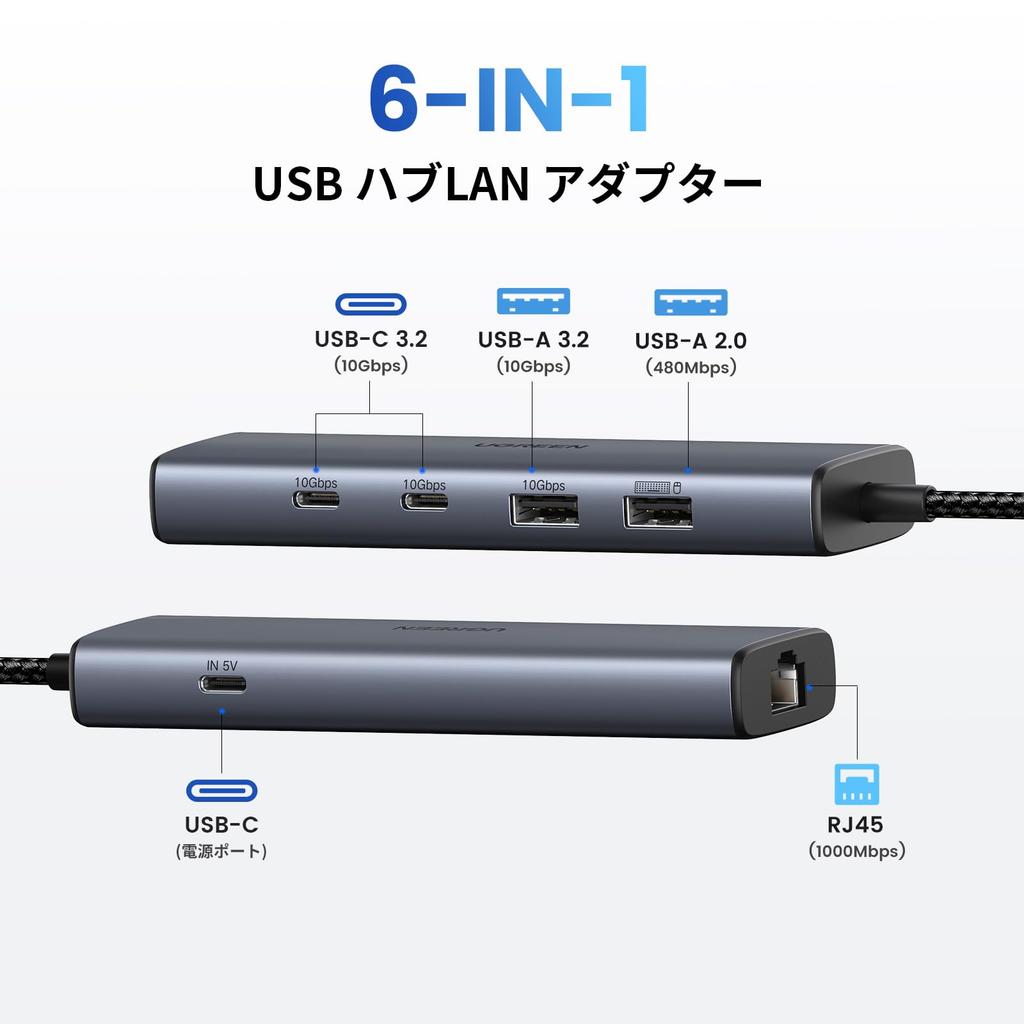 ▶【6-in-1 USB Hub LAN Adapter】: UGREEN USB A Wired LAN Adapter is equipped with a powerful array of ports for connecting high-speed peripherals. With 2* USB-C 3.2, 1* USB-A 3.2, 1* USB-A 2.0, and a 1Gbps Ethernet port, it provides a high-speed wired network to make your work easier and more efficient.