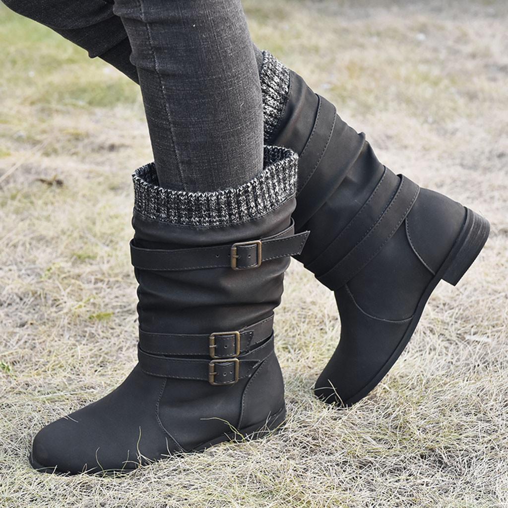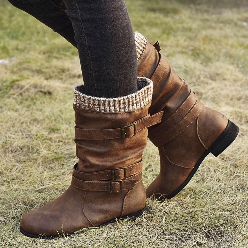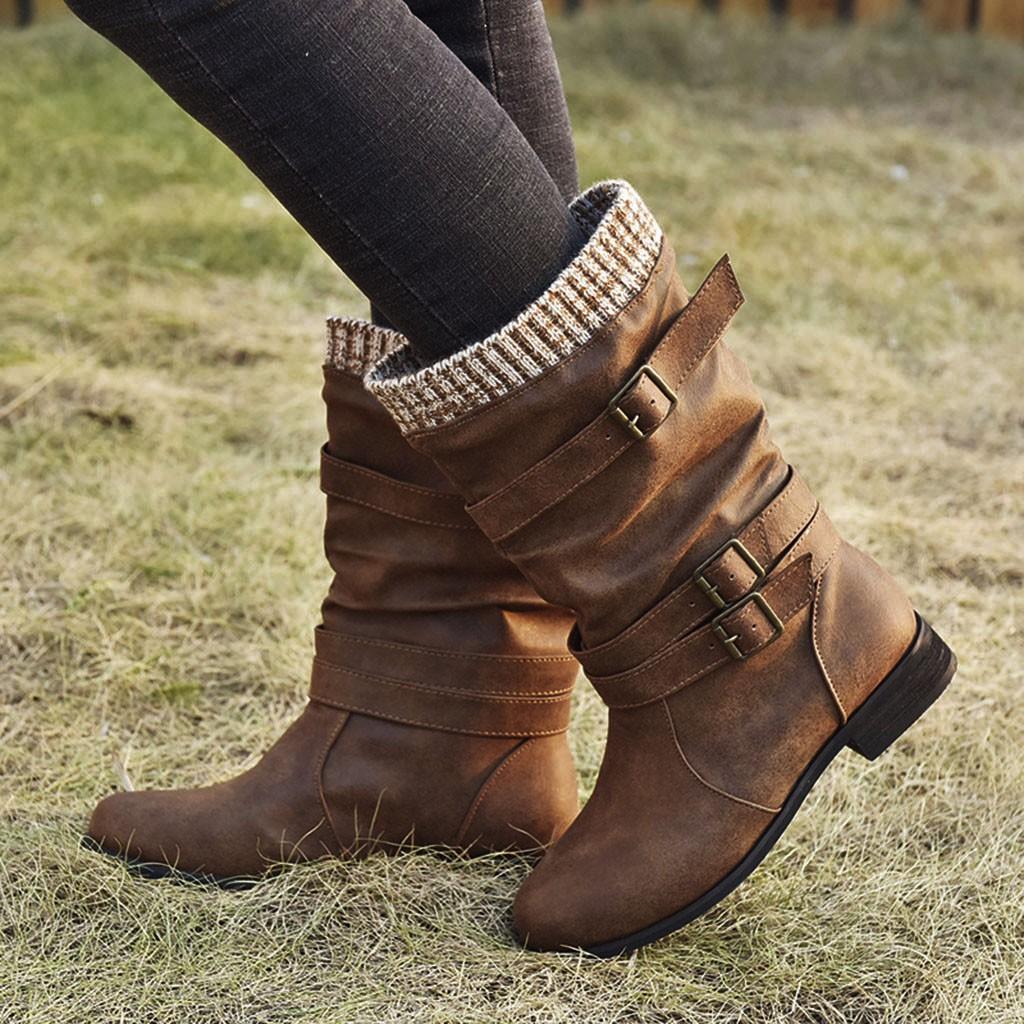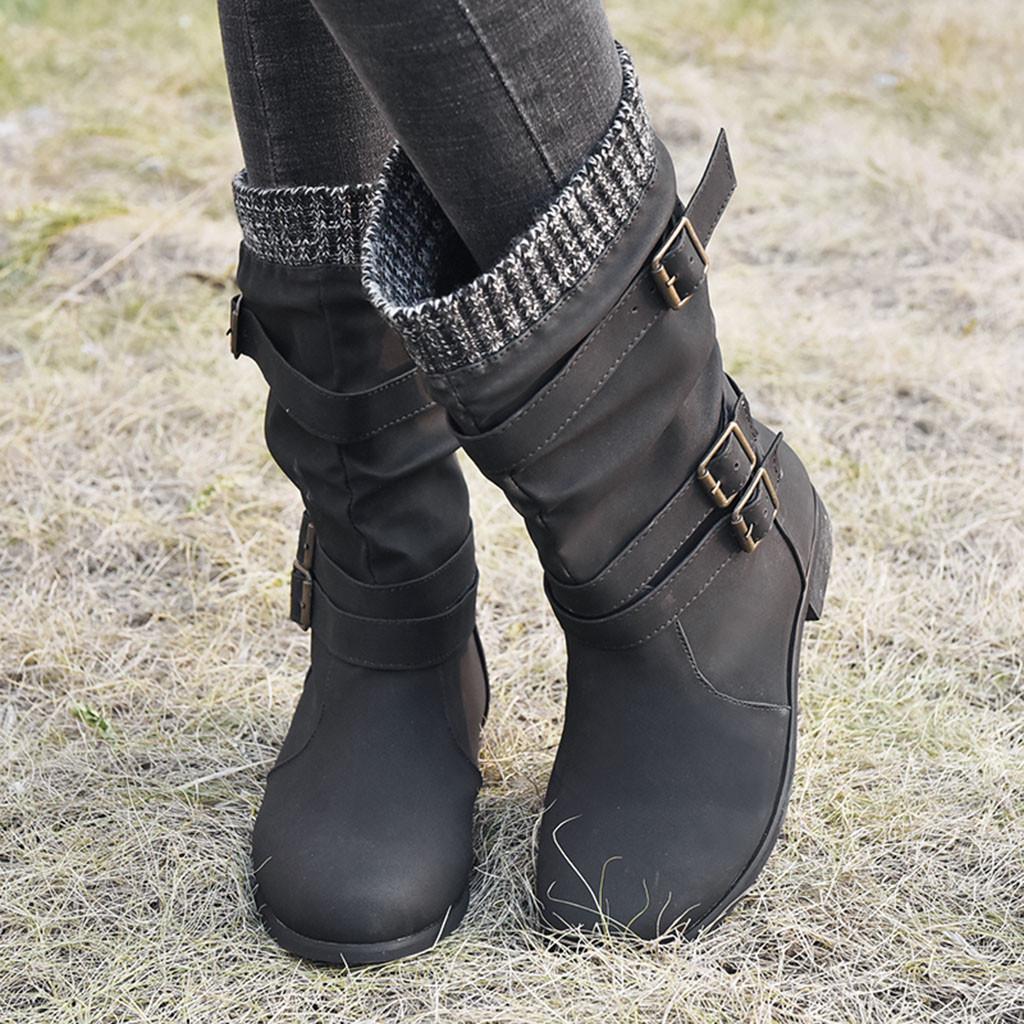 Женские кожаные ботинки на плоской подошве с круглым носком, на низком каблуке с пряжкой и ремешком, ботинки в западном стиле среднего размера
