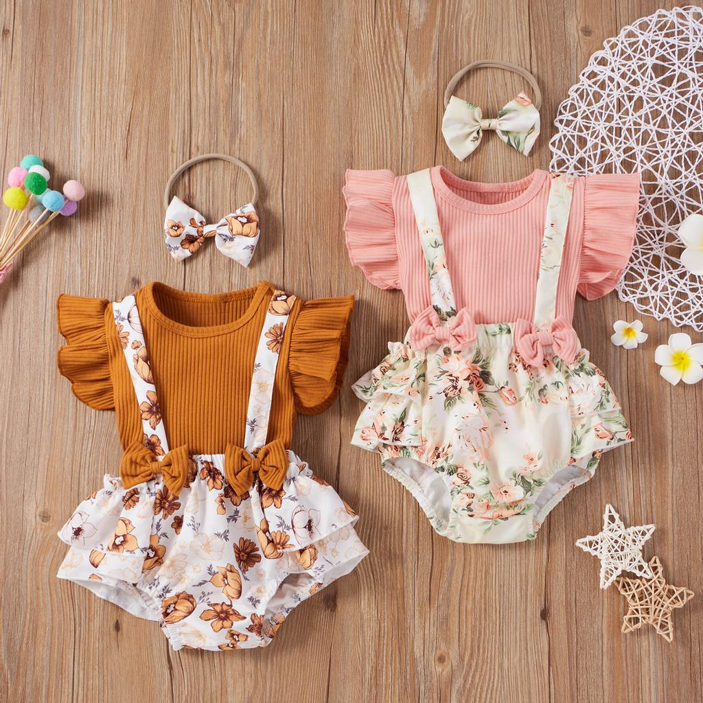 Однотонные топы для маленьких девочек + шорты на подтяжках с цветочным принтом подсолнечника, наряды