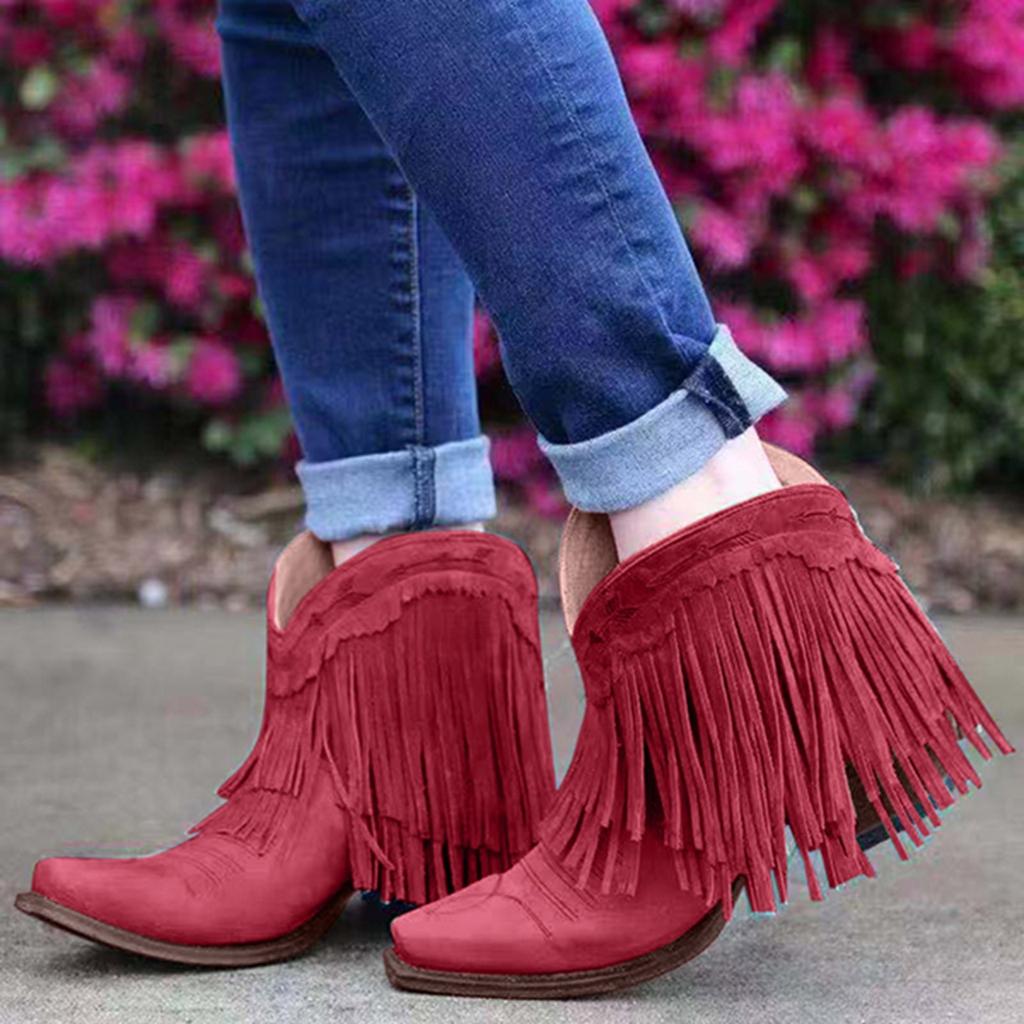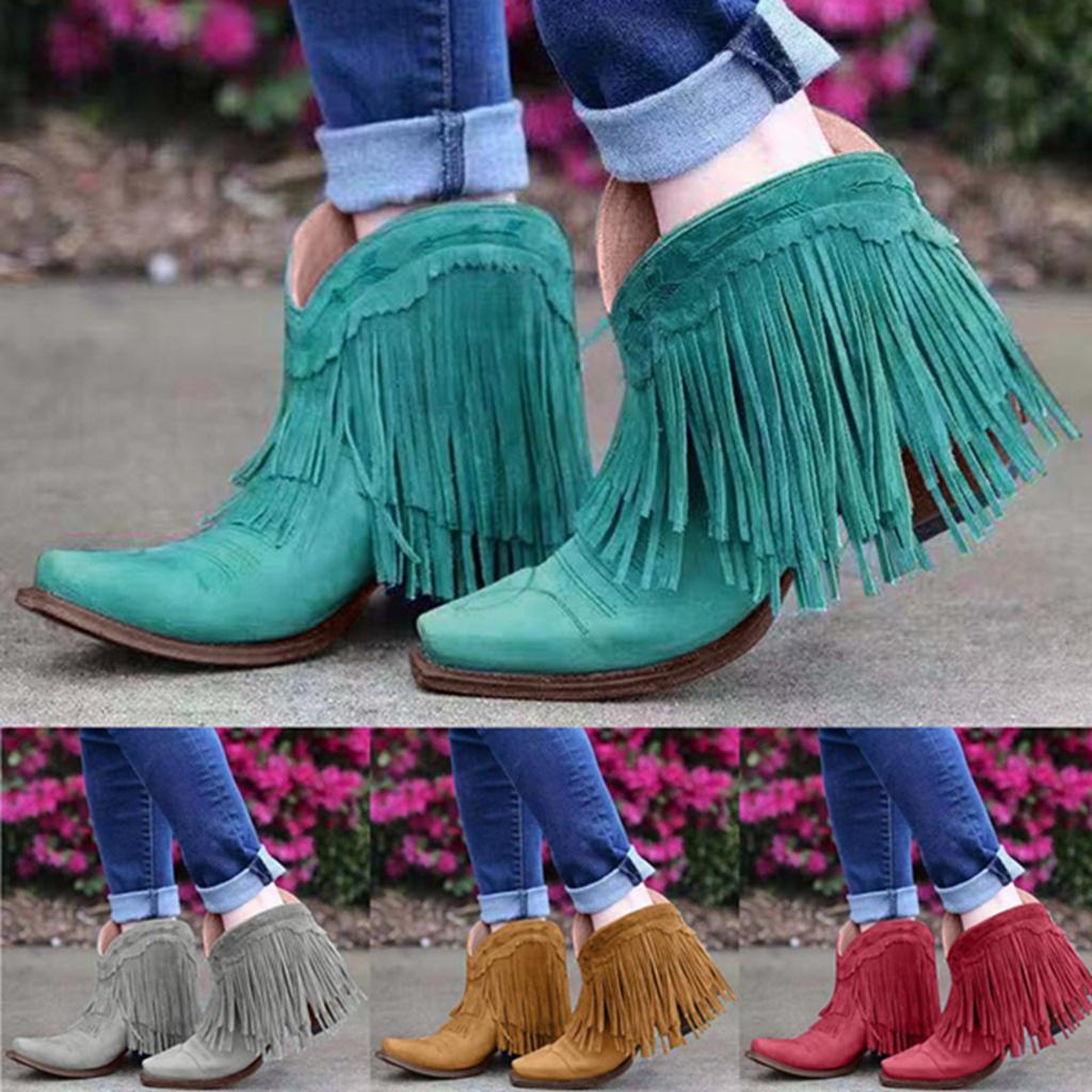 Ботильоны на толстом каблуке с рукавами-кисточками Короткие ботинки Ботинки Женские ботинки