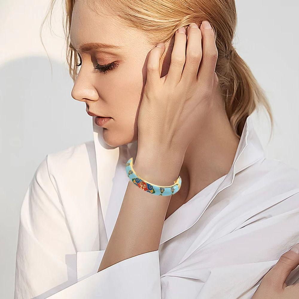 Эмаль Винтажный браслет-перегородчатая эмаль Традиционный женский браслет на руку Выдолбленный браслет-цветок Женский