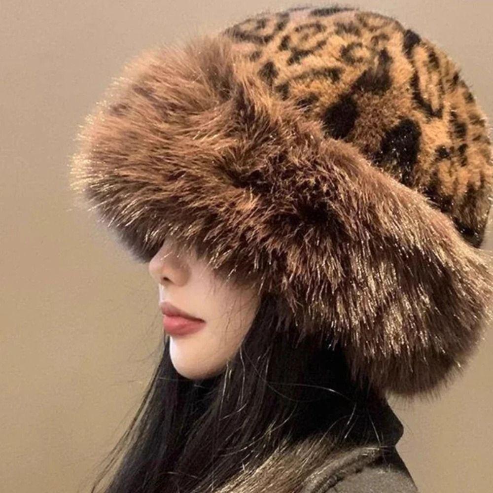 Норковый мех Леопардовый принт Плюшевая Монгольская шапка без полей Плюшевая Панама Осень и Зима — купить товар онлайн с бесплатной доставкой до всему миру!
