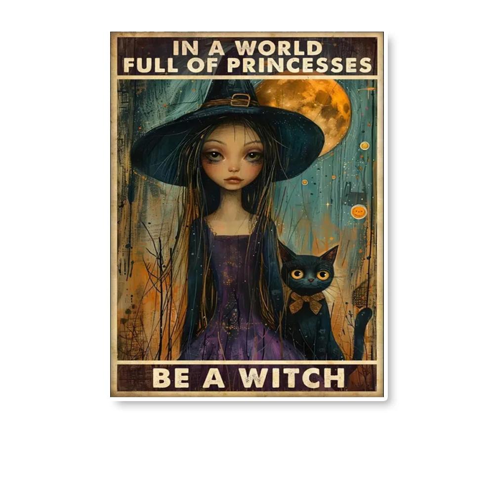 Будь Ведьмой Настенные Плакаты и Принты, Ведьма Ведьмовская Ведьмовство Девушка и Черный Кот Живопись, Хэллоуин Домашний Декор Без Рамки
