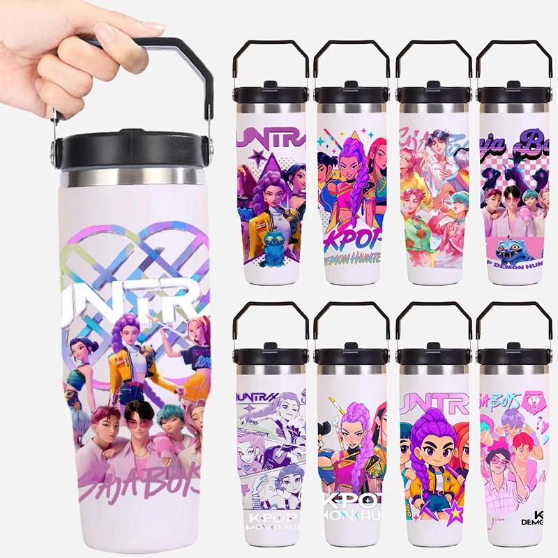 30 унций Аниме K-Pop Американский Простой Однотонный Термос из Нержавеющей Стали Портативный Автомобильный Легко Носить Чашка для Воды Термоизоляция Холодная Чашка для Льда