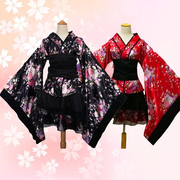 Японское аниме косплей кимоно кружево Лолита вишневый цветочный принт Хэллоуин нарядное платье для женщин