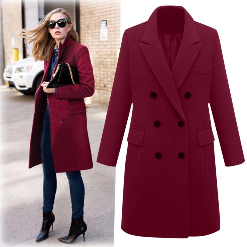 Женское зимнее шерстяное пальто с лацканами, куртка-тренч, длинное пальто, верхняя одежда
