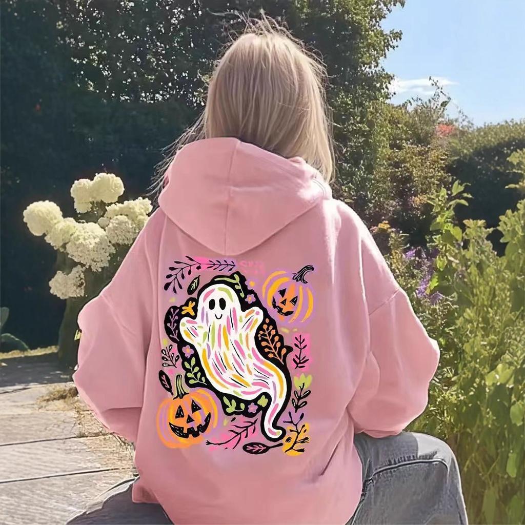 Женские весенне-осенние повседневные худи с капюшоном и длинными рукавами, с большим карманом, с принтом Хэллоуинского призрака и тыквы, пуловер, толстовка, топ