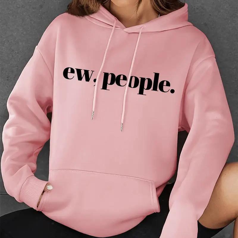 Женские повседневные худи с капюшоном и длинными рукавами, с большим карманом, с принтом букв EW.PEOPLE
