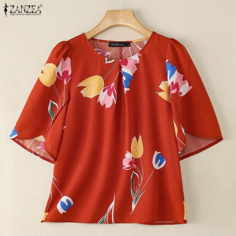 ZANZEA Women Casual Round Neck Loose Print Half Sleeve Blouse — купить товар онлайн с бесплатной доставкой по всему миру!