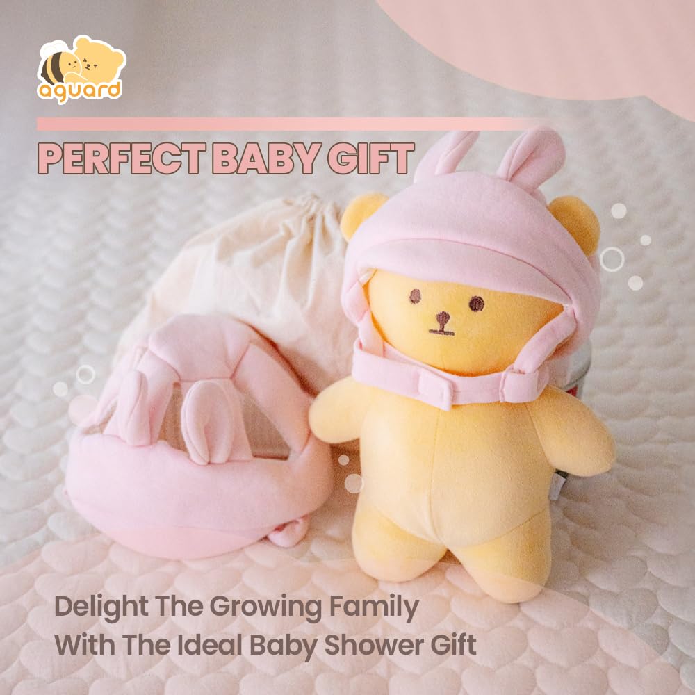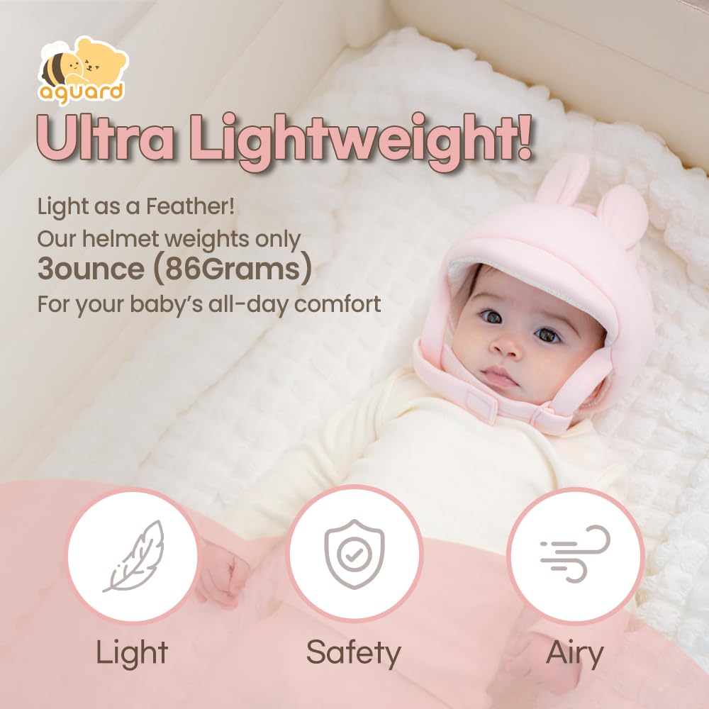 Organic Baby Head Protection Helmet GOTS Certified Bunny Adjustable Ultralight Head Guard for Crawling Pink - Cotton, Print, & Walking,