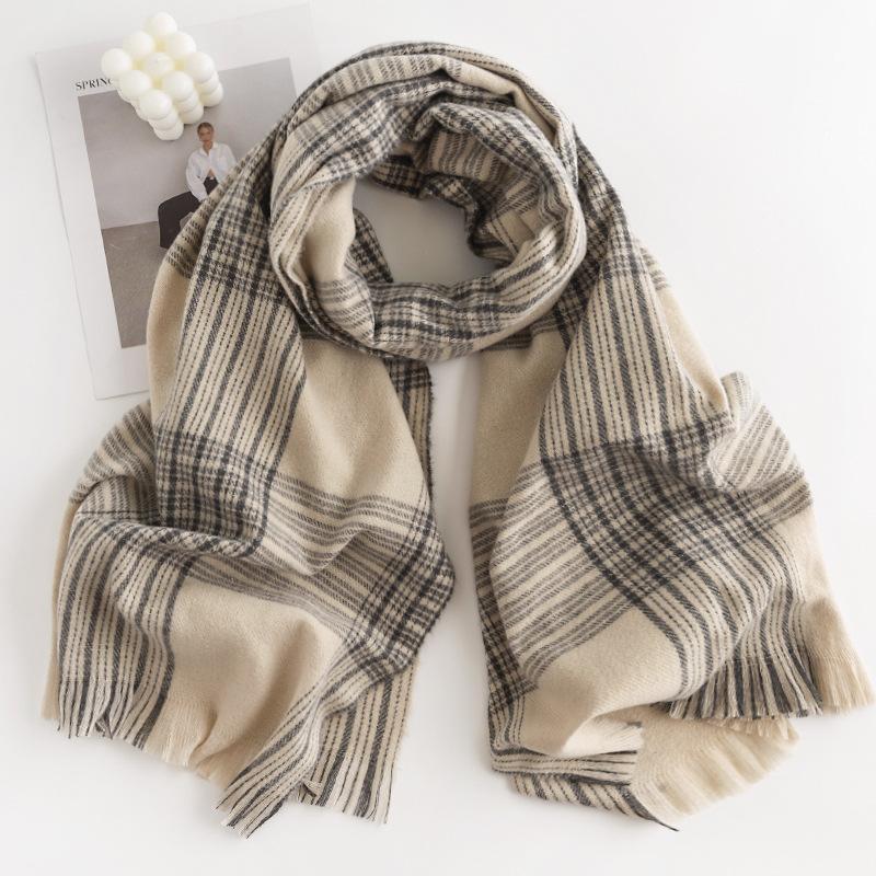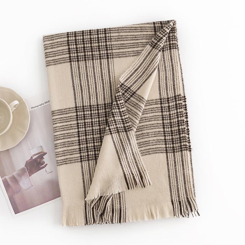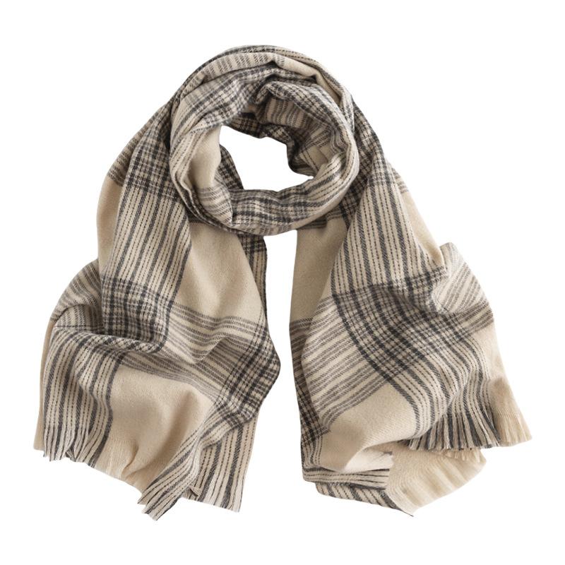 Новый осенне-зимний шарф бежевый полосатый клетчатый имитация кашемира шарф теплая шаль для офисного кондиционера