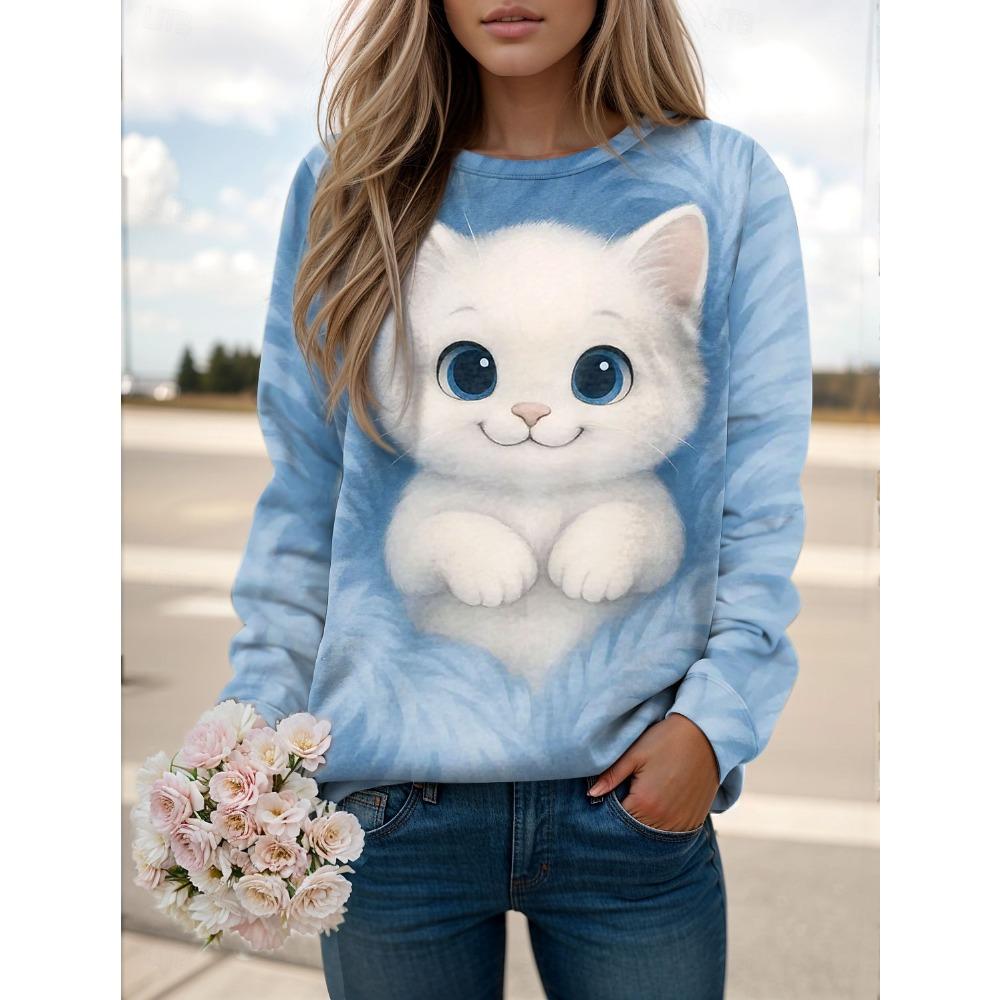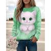 Женский свитшот с принтом кошки, 3D-принт, круглый вырез, длинный рукав, женская одежда, уличная одежда, пуловер на осень-зиму