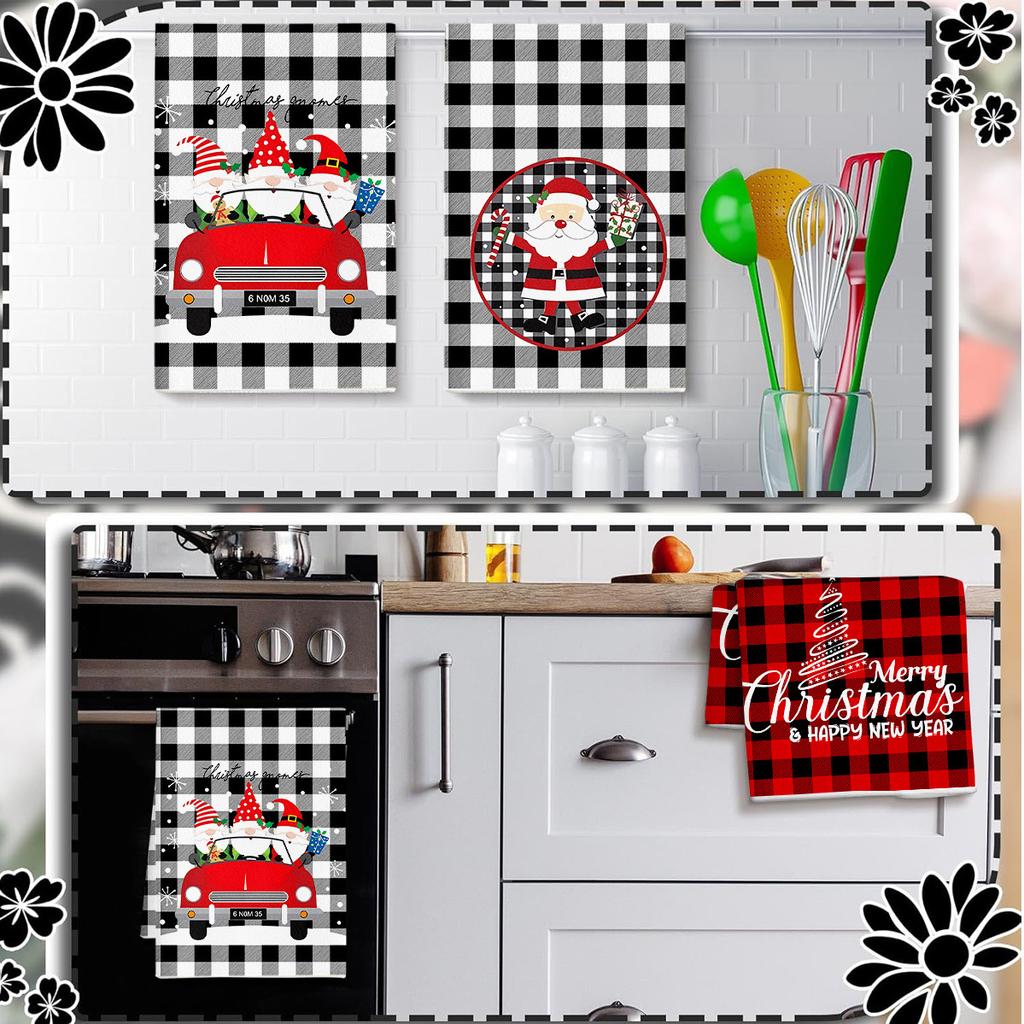 Новая трансграничная микрофибровая кухонная тряпка для мытья посуды в клетку серия «Рождественская елка» чайное полотенце печатное рождественское полотенце