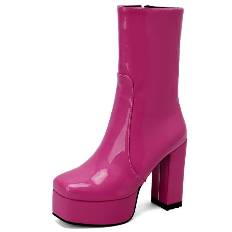 Женские полусапожки на платформе с застежкой-молнией, короткие сапоги, черные, розовые, красные, белые, на каблуке, туфли для вечеринок, женская зимняя обувь, туфли большого размера — купить товар онлайн с бесплатной доставкой по всему миру!