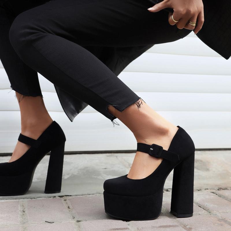 Флок Черные Женские Туфли-Лодочки Сексуальные Готические Туфли на Платформе на Высоком Каблуке Женские с Ремешком на Щиколотке Офисные Вечерние Танцевальные Фетиш-Туфли 2025 Весна
