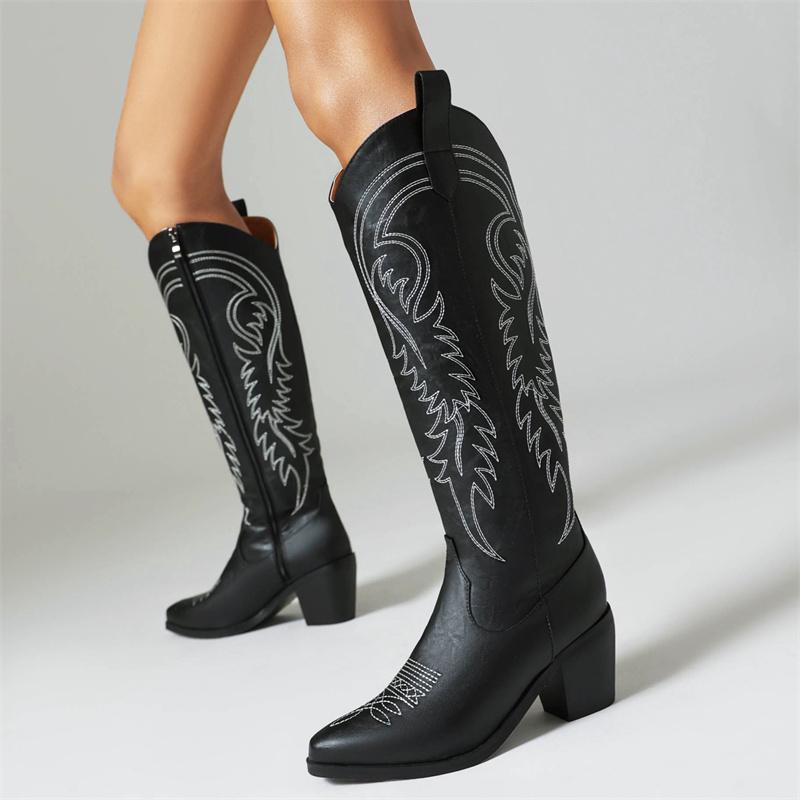 Ботильоны-чулки на танкетке Зимняя обувь 2025 Блочный каблук Вышивка Ковбойские сапоги для женщин Удобные ботильоны челси Женский бренд