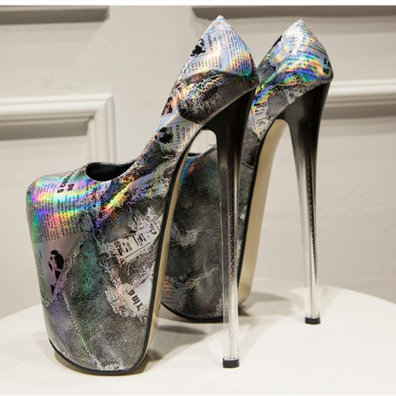 Сексуальные туфли на очень высоком каблуке 22 см, женские модные туфли на платформе с этническим принтом, женские туфли на каблуке, большие размеры, фетиш-обувь для стриптиза
