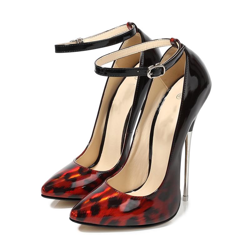 16см Металлические Экстремально Высокие Каблуки Обувь Женская Сексуальная Леопардовая Женские Каблуки Роскошные Ремешки Туфли-Лодочки Вечеринка Стриптизер Танцевальная Обувь Женские Каблуки
