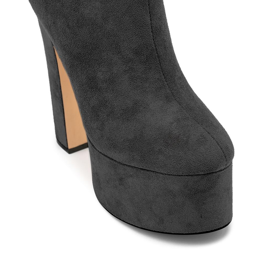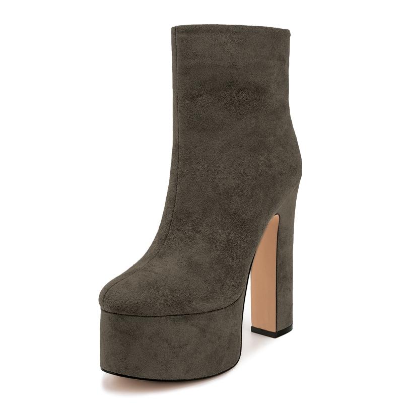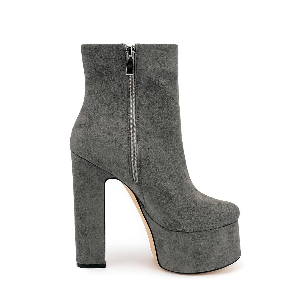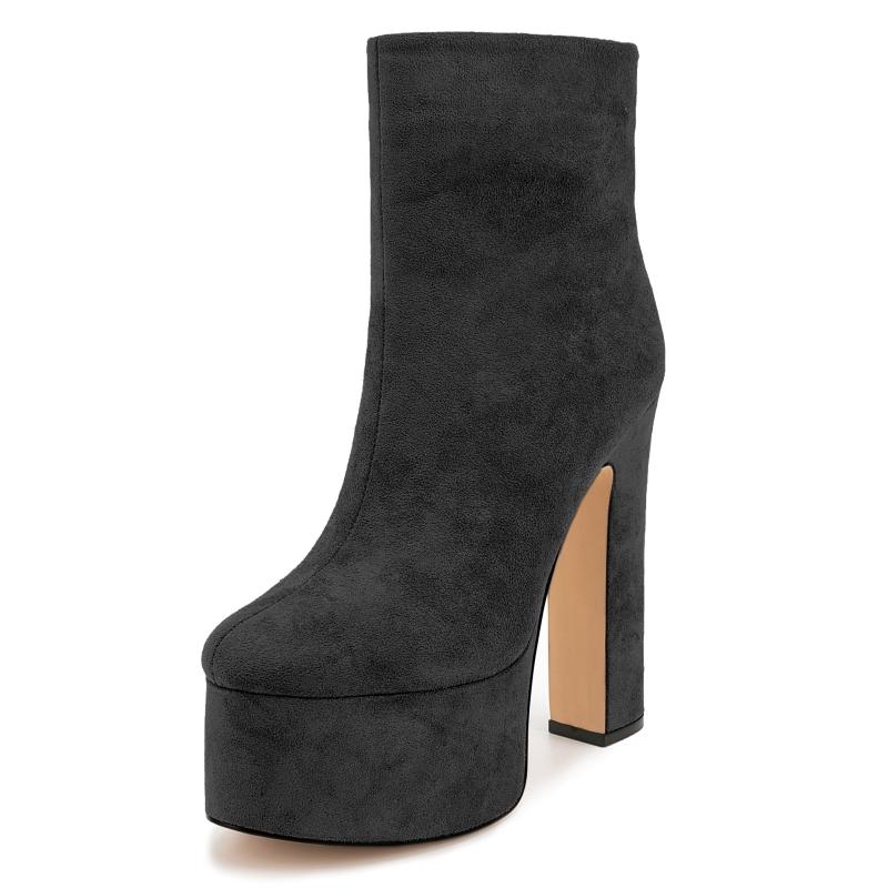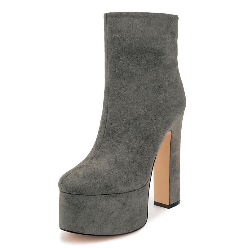 Сексуальные женские ботильоны на платформе, зима-осень, короткие ботинки на высоком каблуке, замшевые, черные, серые, для вечеринок, женские