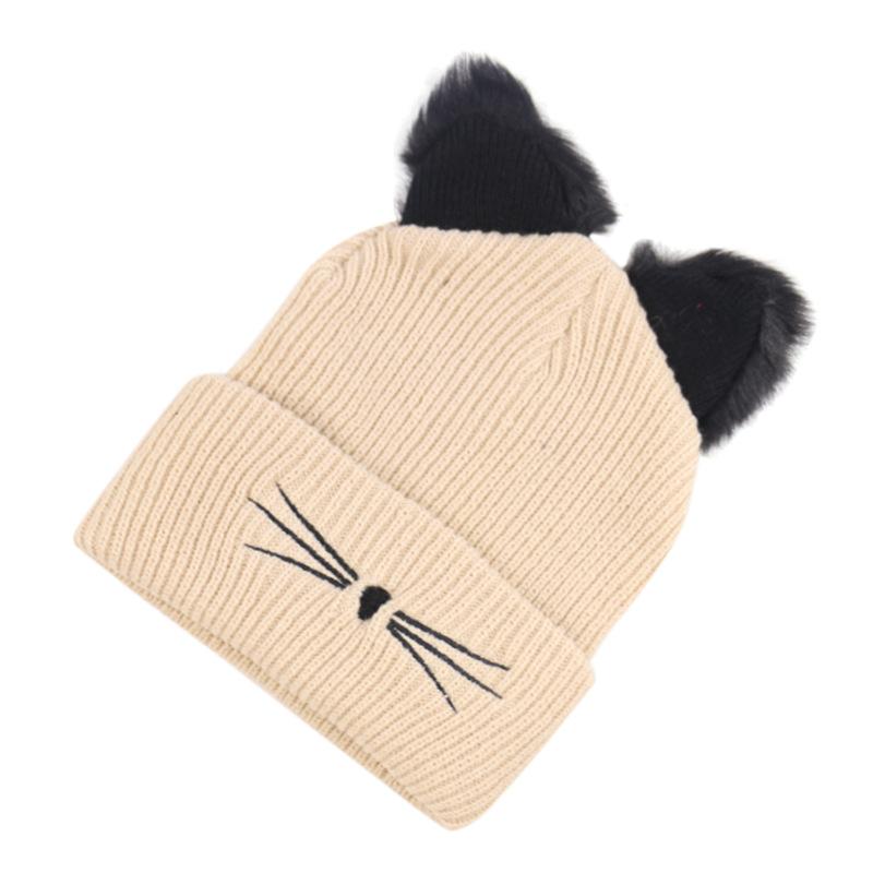 Новая европейская и американская женская вязаная шапка с вышивкой кошачьих ушек, Харадзюку, шерстяная шапка, трансграничные женские зимние модели 2023 года