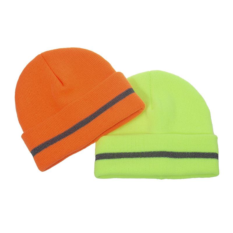 2025 осень и зима новая шапка с отворотом флуоресцентная светоотражающая полоса вязаная шапка трансграничная теплая шерстяная шапка модная холодная шапка мужская