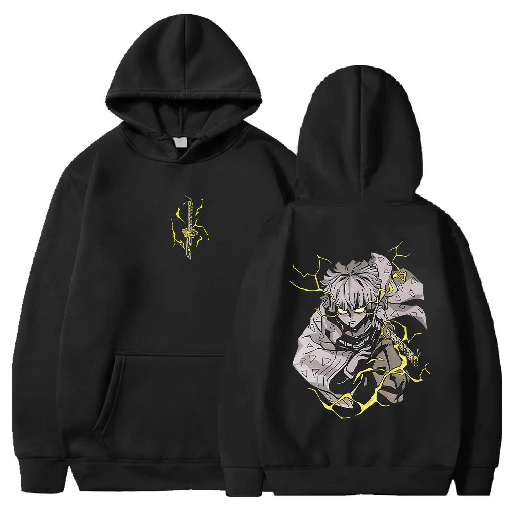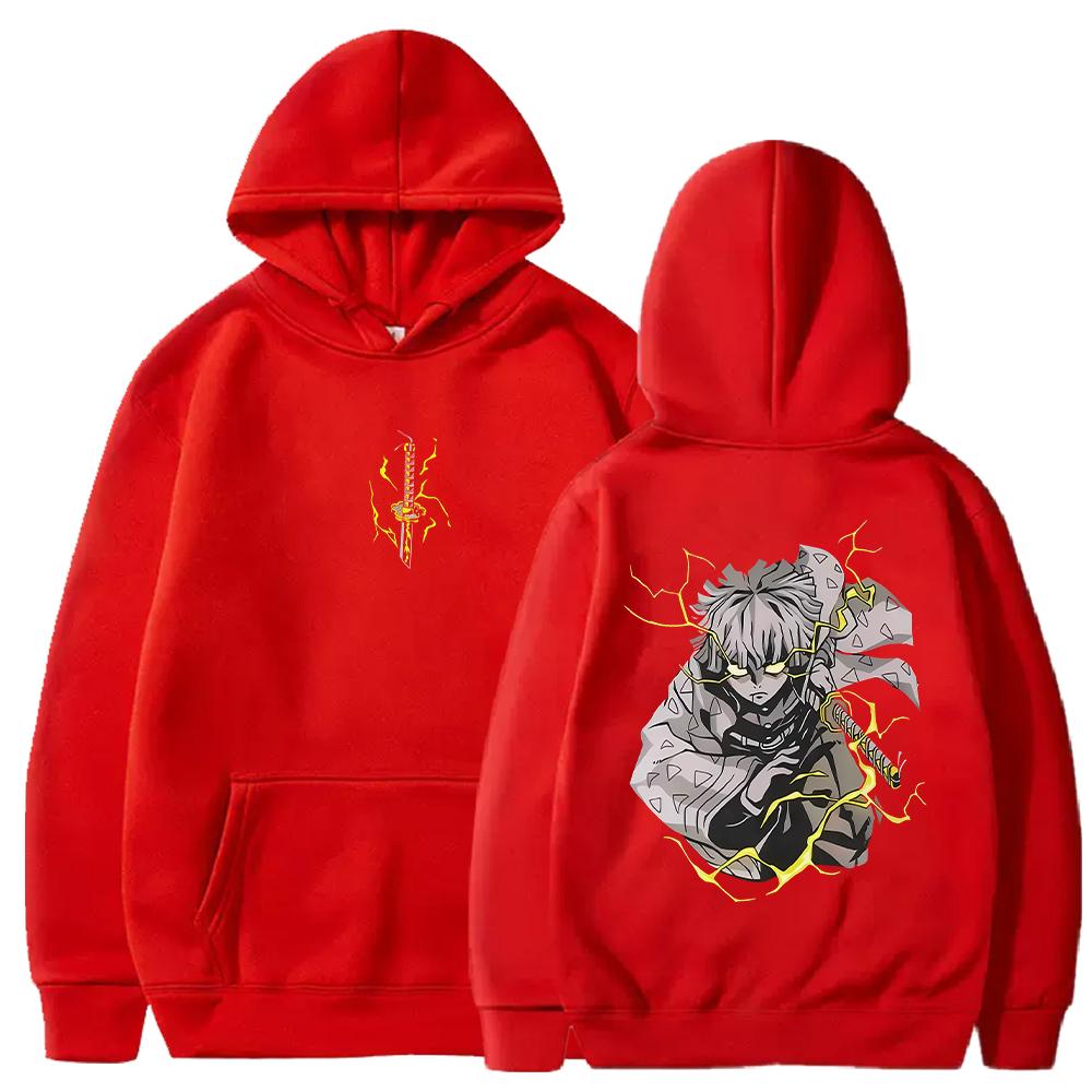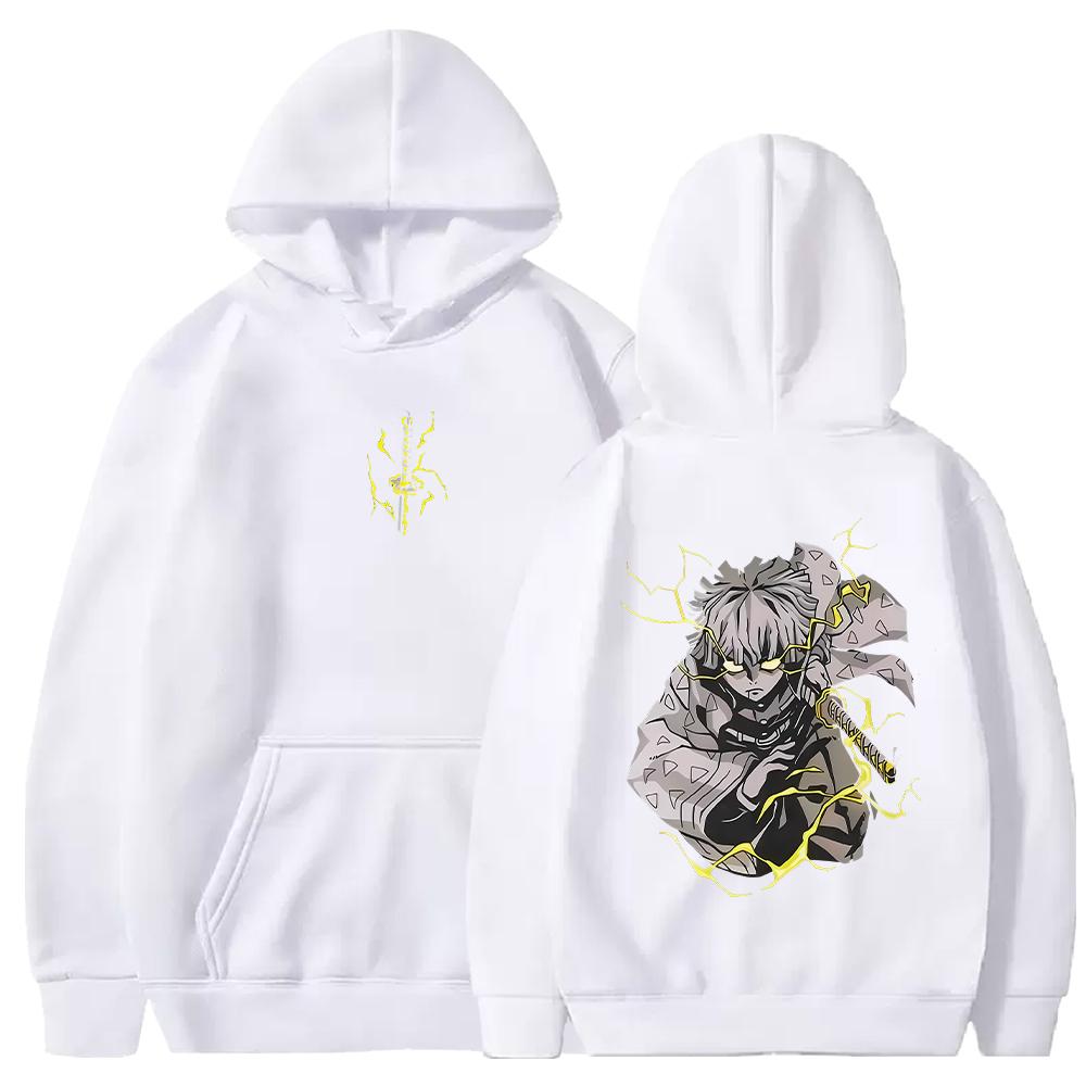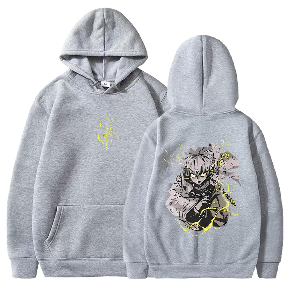 Винтажные худи Demon Slayer Харадзюку Осень Зима Флисовые толстовки Манга Зеницу Графические худи Уличная одежда Мужская Женская Одежда