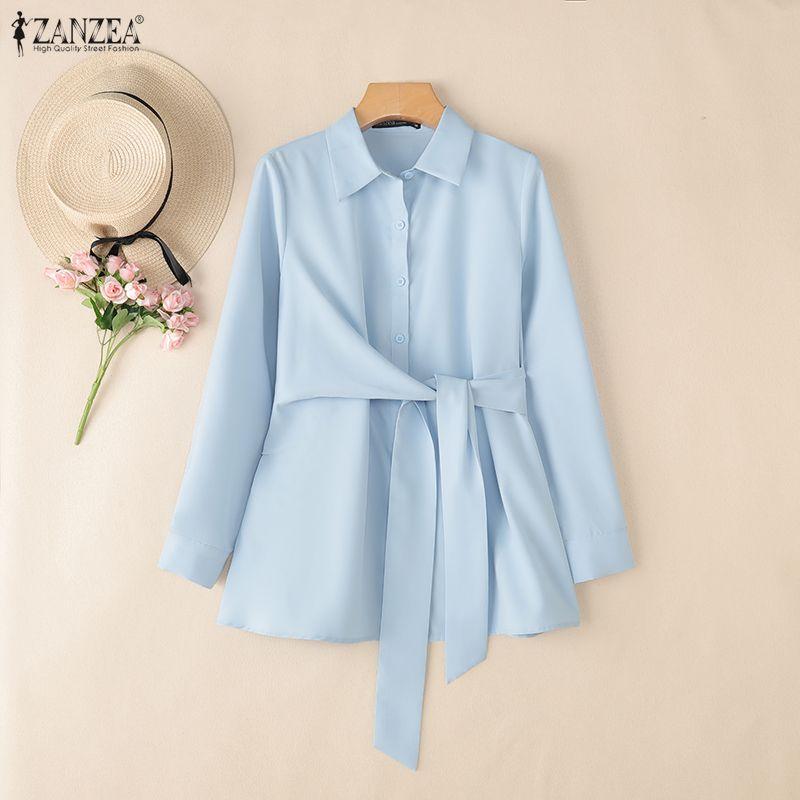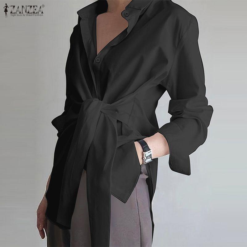ZANZEA Женская повседневная блузка с отложным воротником и длинным рукавом