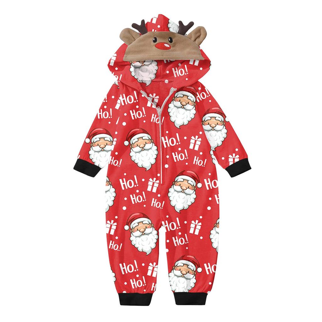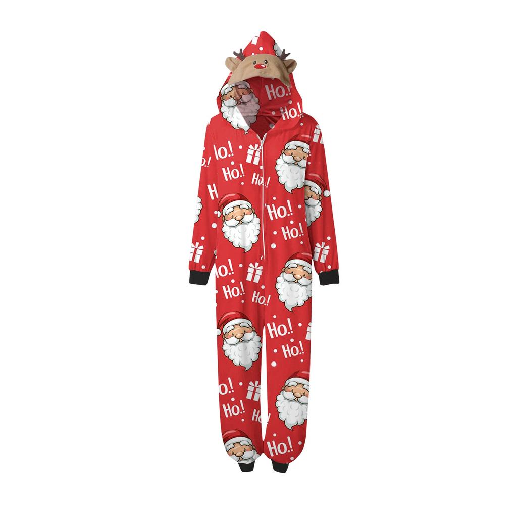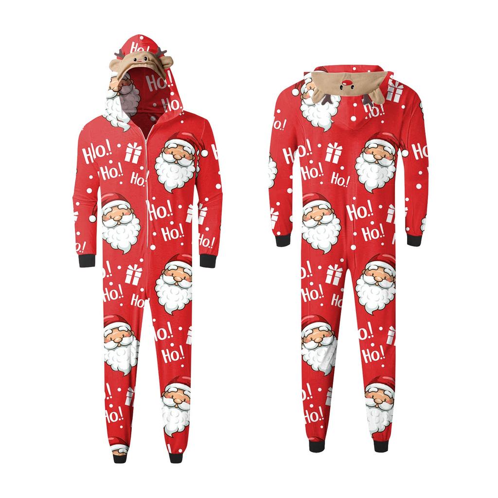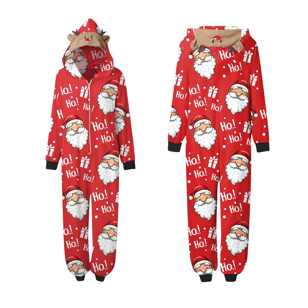 Комплект комбинезона на молнии с капюшоном и длинными рукавами для всей семьи с рождественским принтом