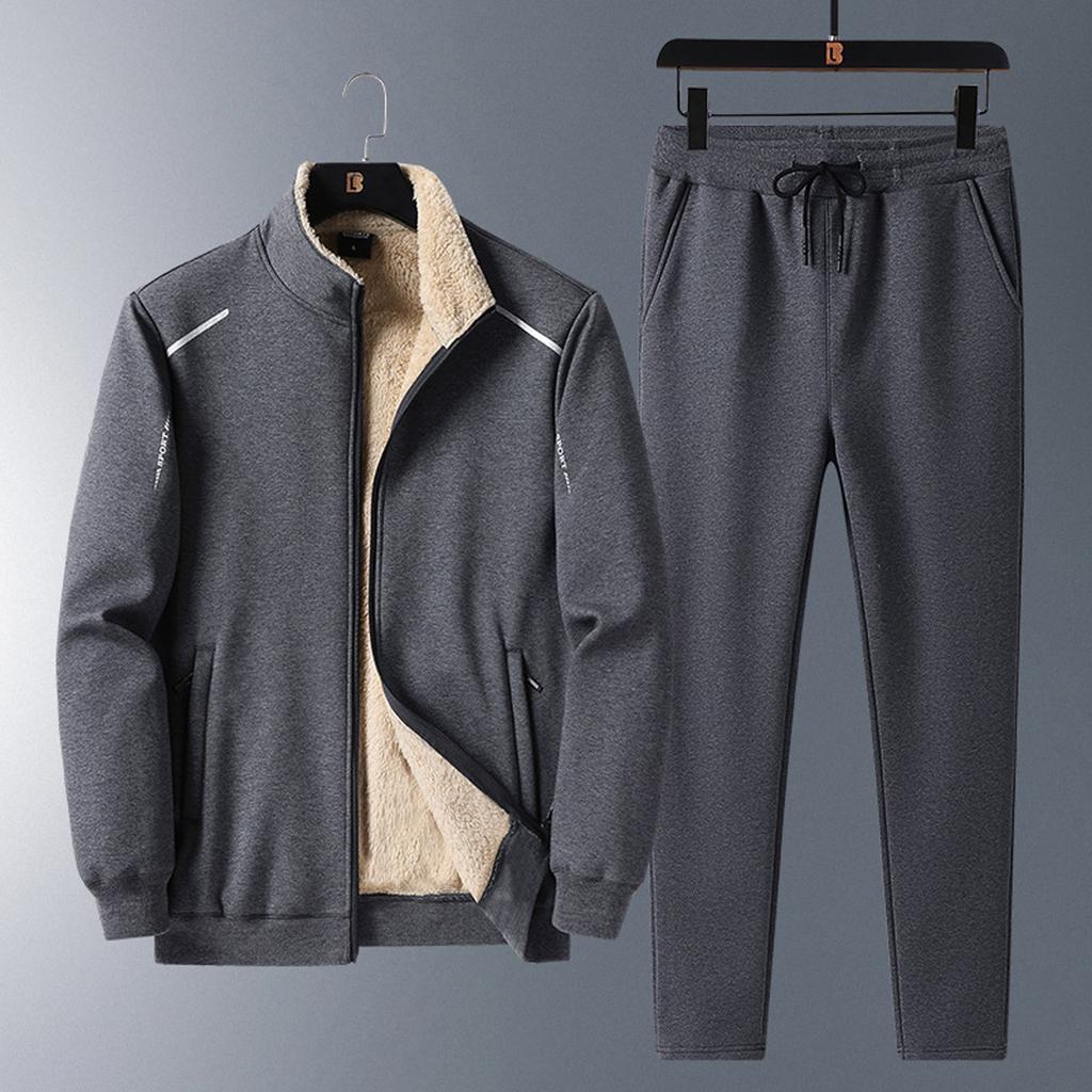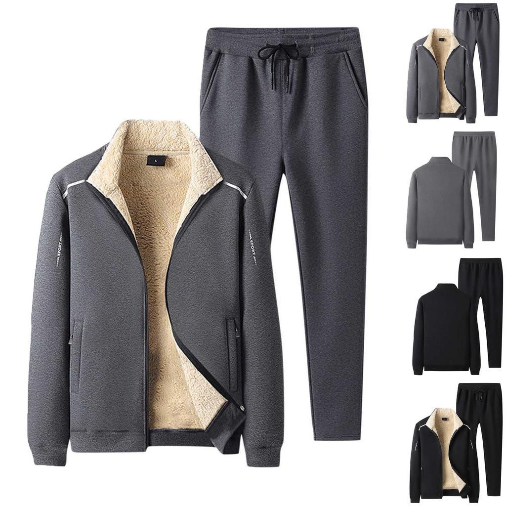 Плюшевый и утолщенный ягненок свободного кроя, спортивный теплый повседневный комплект из 2 предметов для мужчин