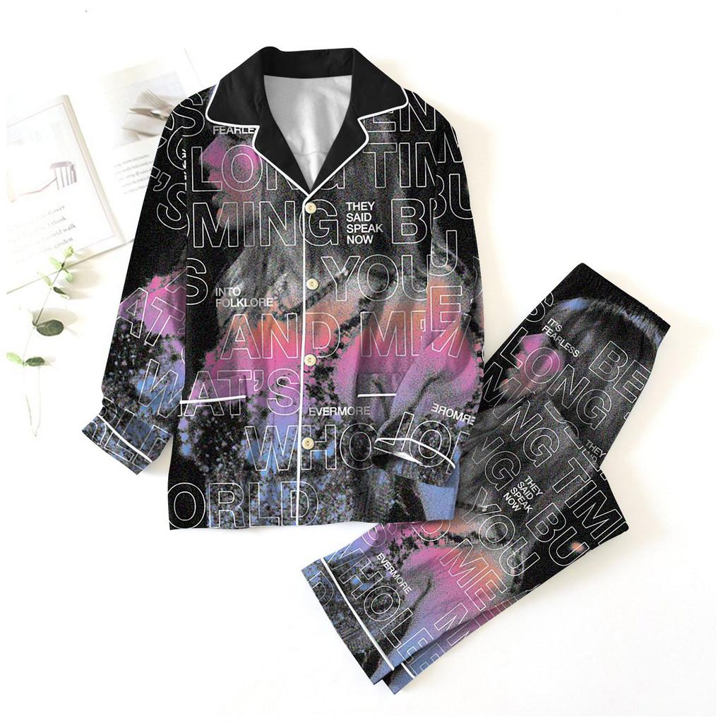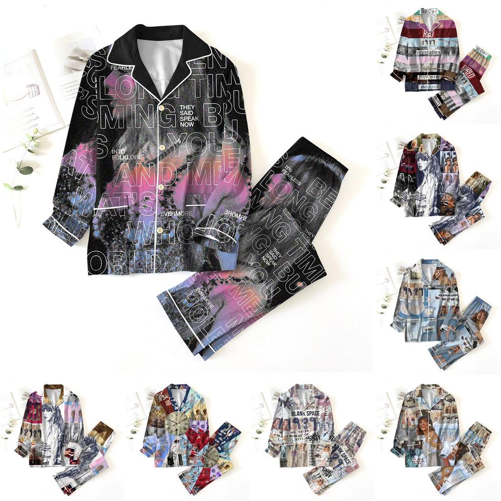 Женский костюм из 2 предметов с принтом, топ на пуговицах с длинными рукавами, широкие брюки, комплект, пижамный домашний повседневный костюм