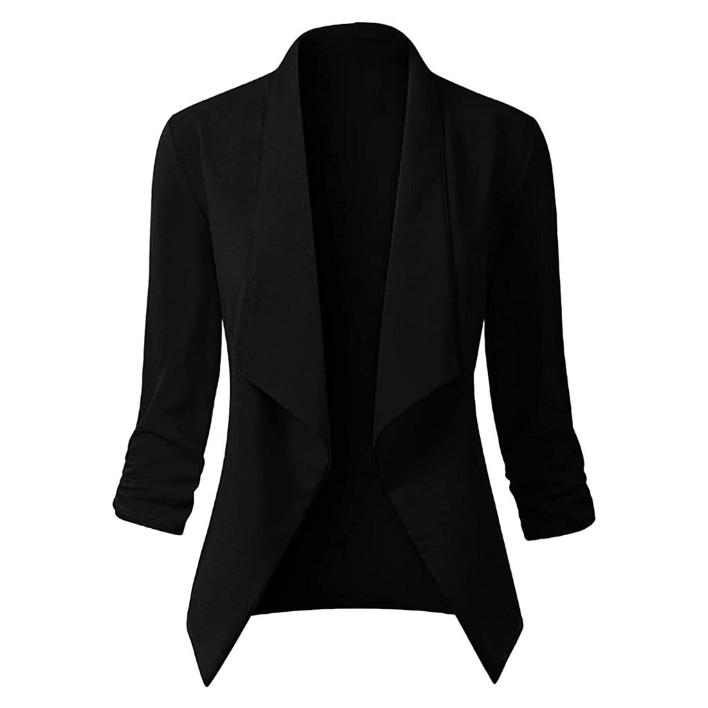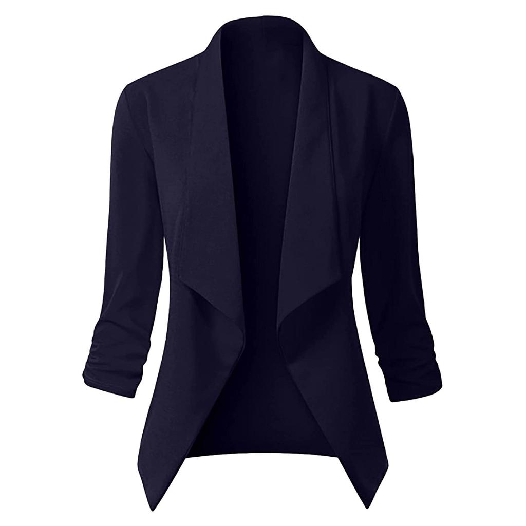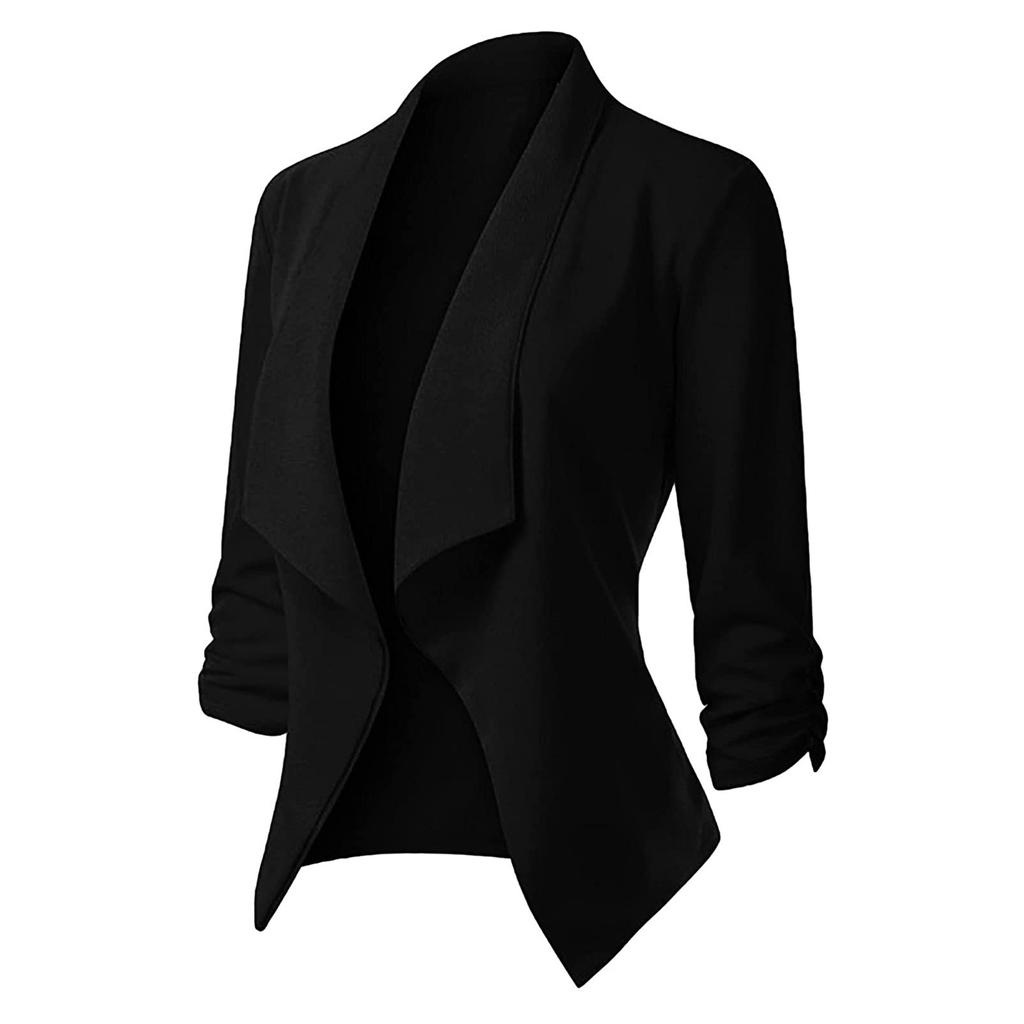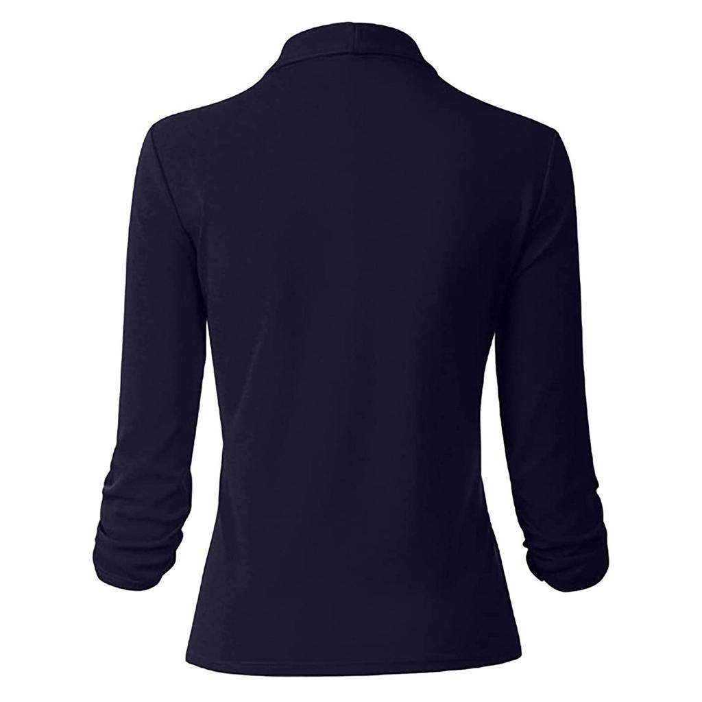 Женский твердый кардиган с открытыми передними карманами, формальный костюм, блузка с длинным рукавом, пальто