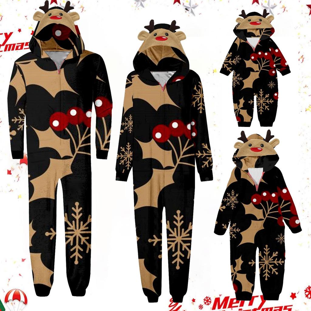 Комплект комбинезона на молнии с капюшоном и длинными рукавами для всей семьи с рождественским принтом
