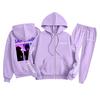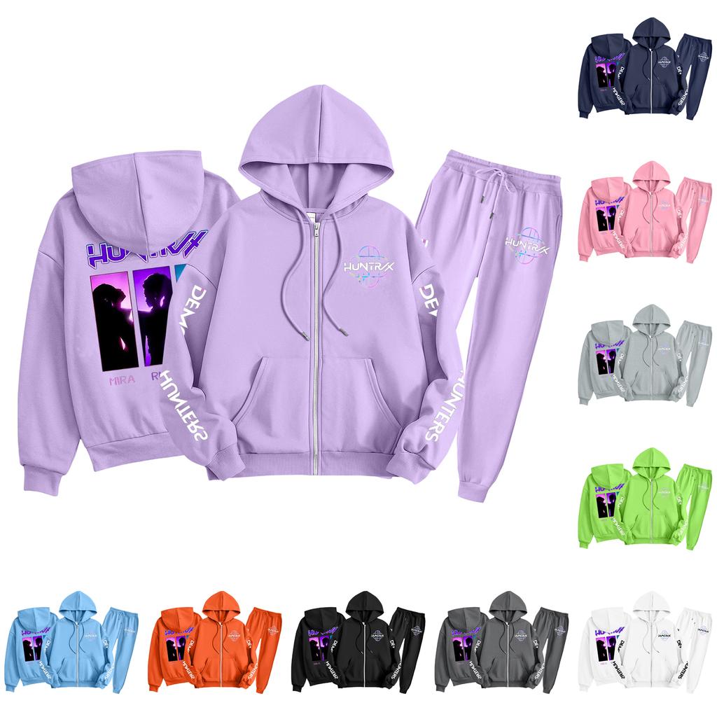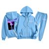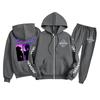 Детская мода Толстовка с капюшоном на молнии с длинными рукавами и спортивные штаны Однотонный комплект толстовки с карманами