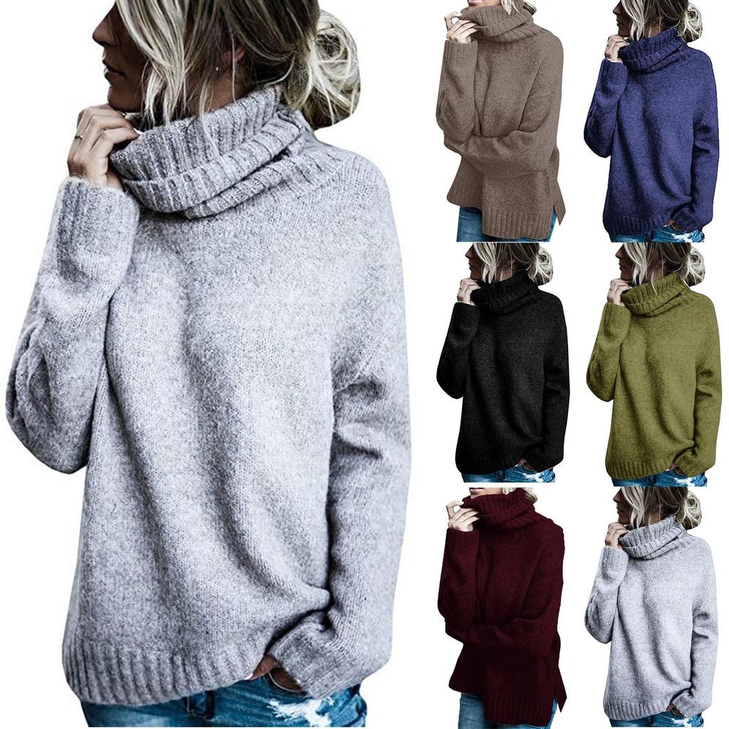 Женский модный однотонный свитер с длинными рукавами, свободный вязаный свитер с высоким воротником
