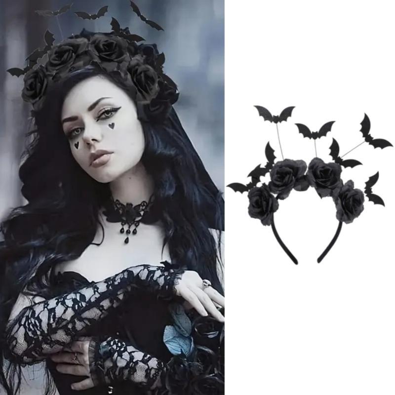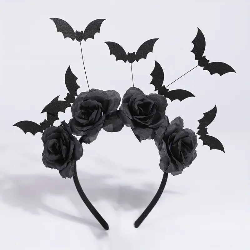 Хэллоуин Ролевая Повязка на Голову Милые Искусственные Цветы Готическая Повязка на Голову с Летучей Мышью Креативный Костюм для Танцевальной Вечеринки Головной Убор Аксессуар для Волос
