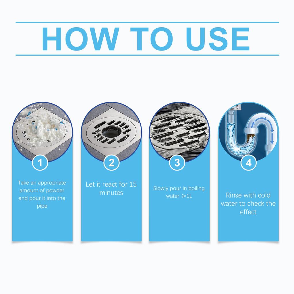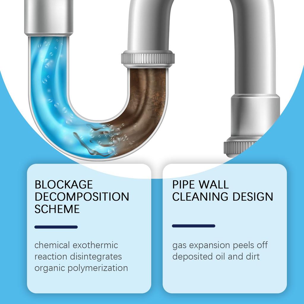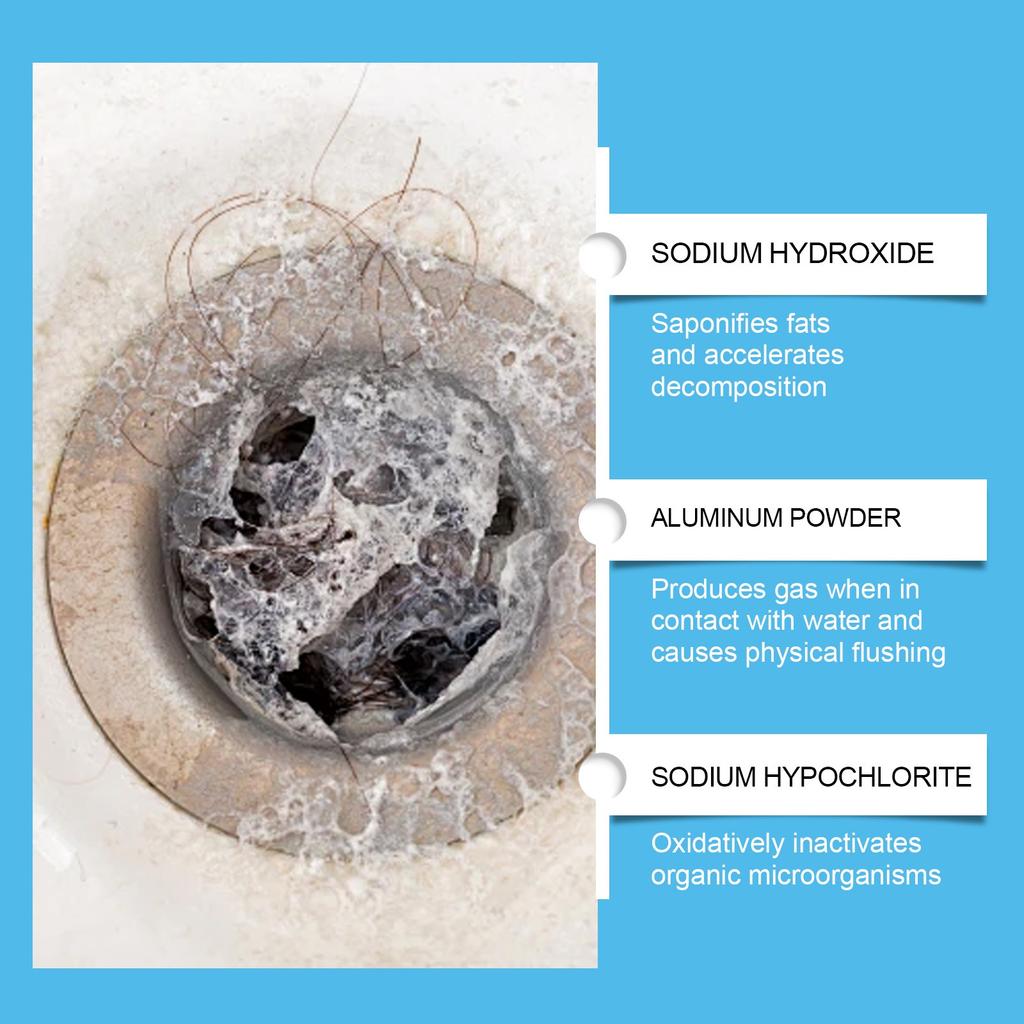 Порошок двойного действия для прочистки труб, используется для помощи в прочистке стенок труб, очистки волос и жира. Порошок для прочистки труб