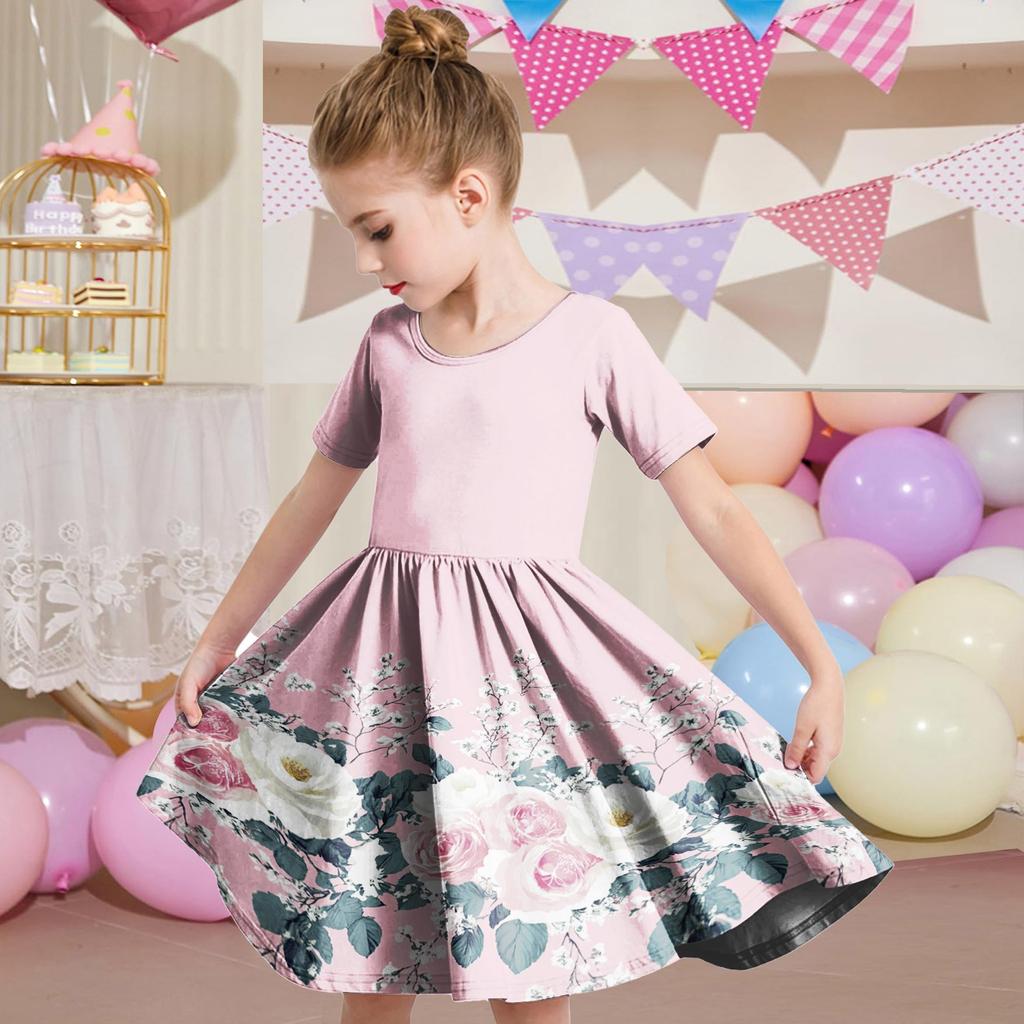 Летнее платье для девочек, платье для малышей, однотонное повседневное платье-футболка с коротким рукавом А-силуэта