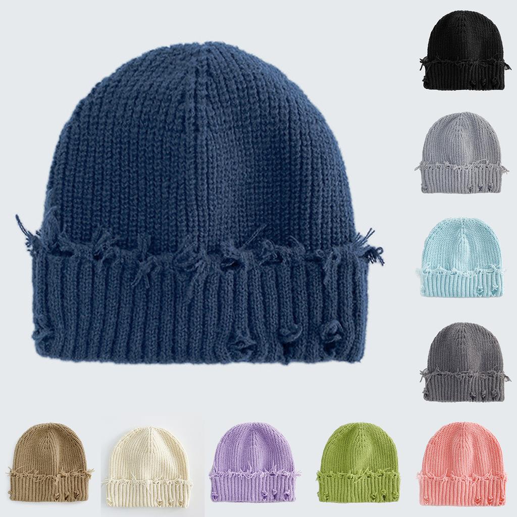 Женская взрослая вязаная шапка, шерстяная шапка, перфорированная шапка, универсальная и привлекательная, для маленького лица