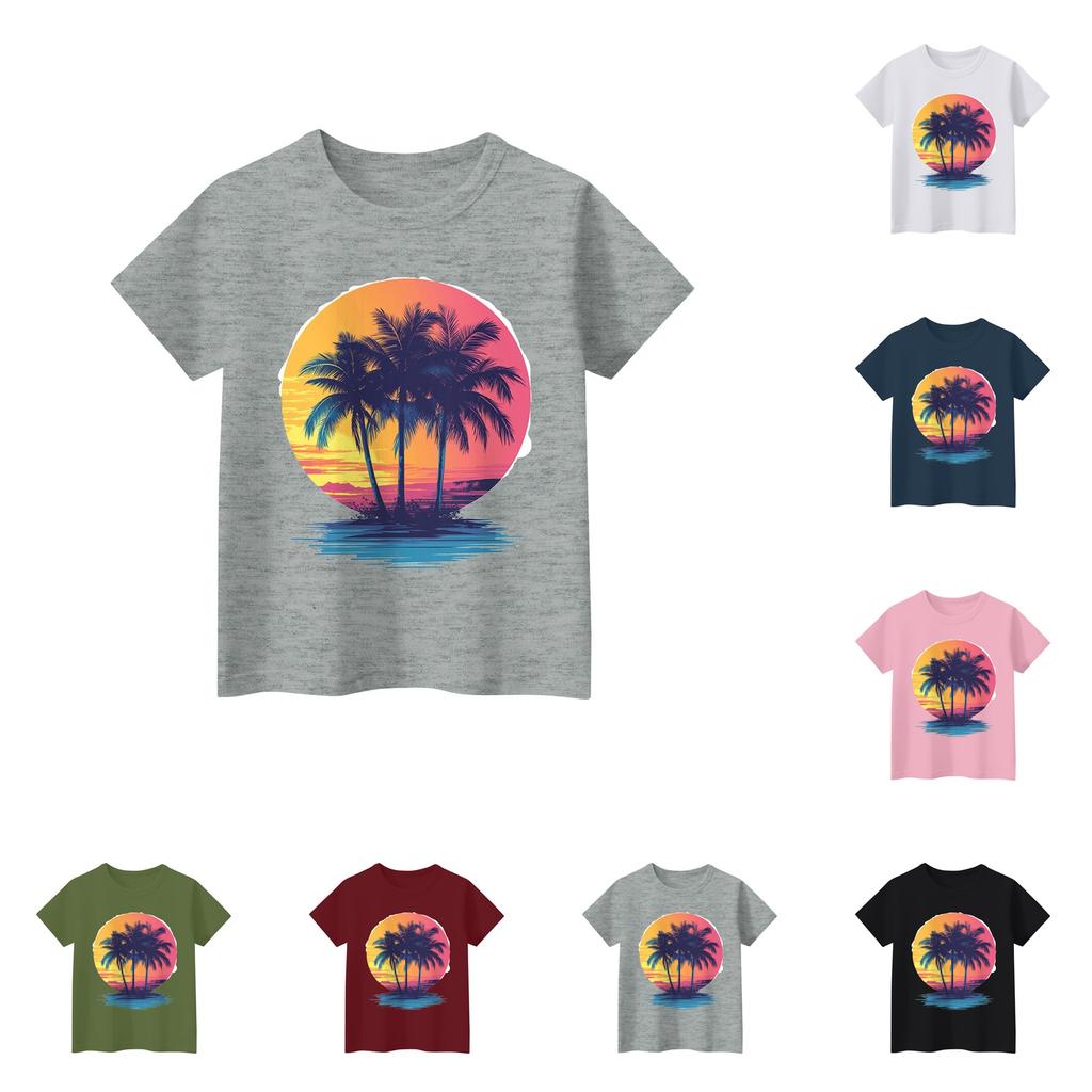 Детские топы с коротким рукавом, повседневная футболка с принтом, круглый вырез, блузка-пуловер