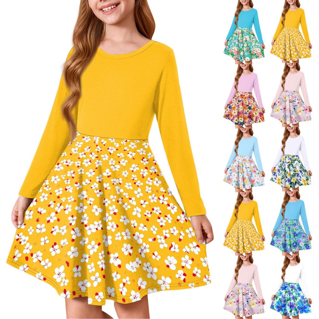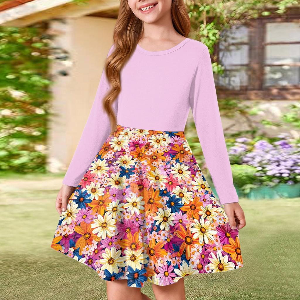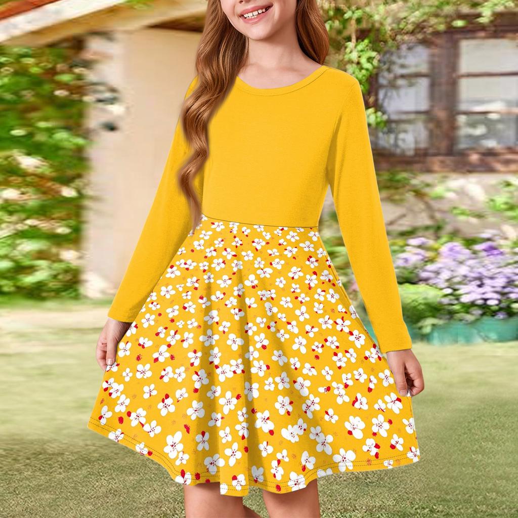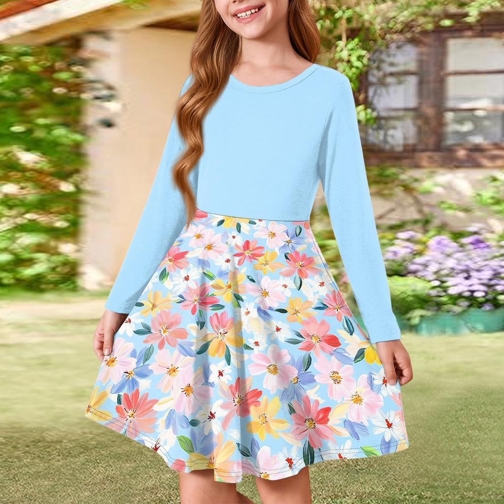 Летнее платье принцессы для девочек - платье-футболка А-силуэта с длинными рукавами
