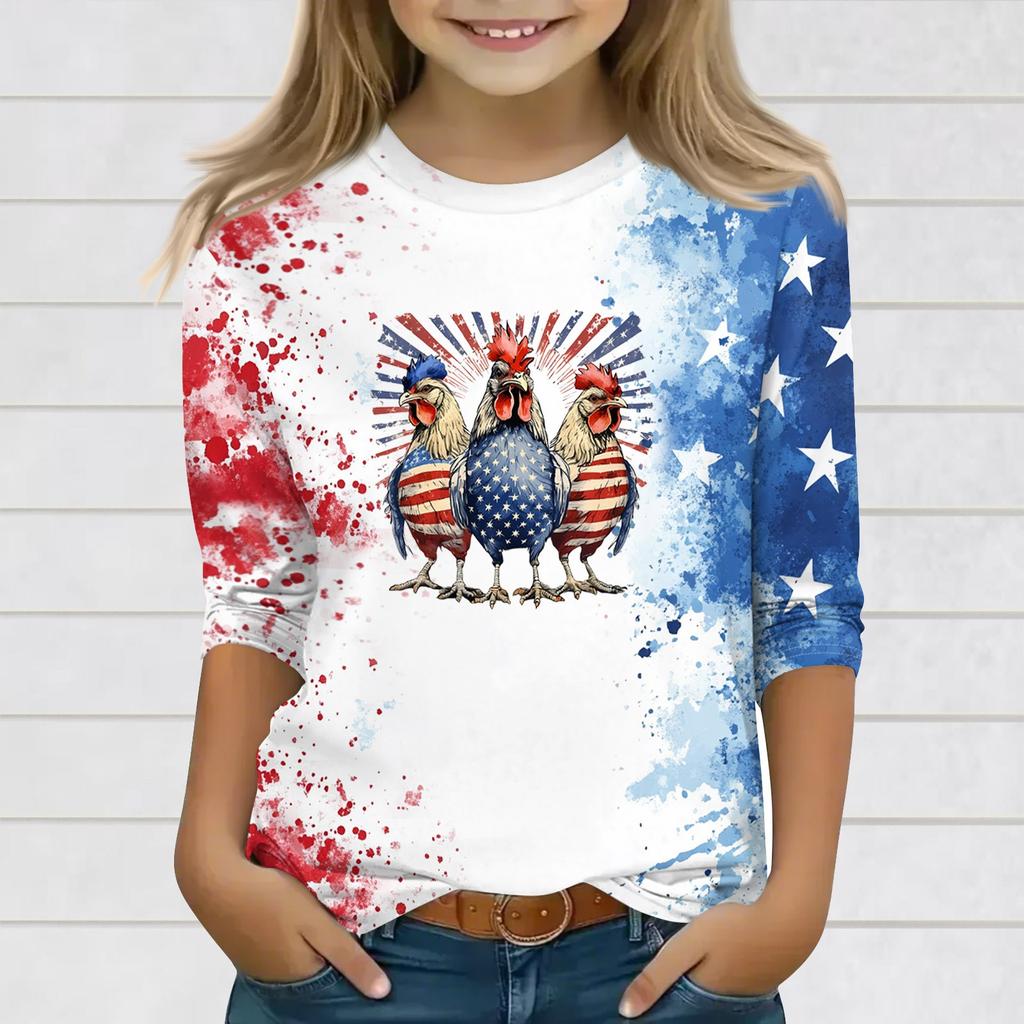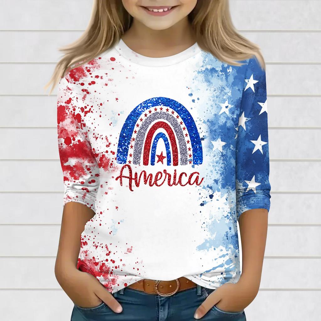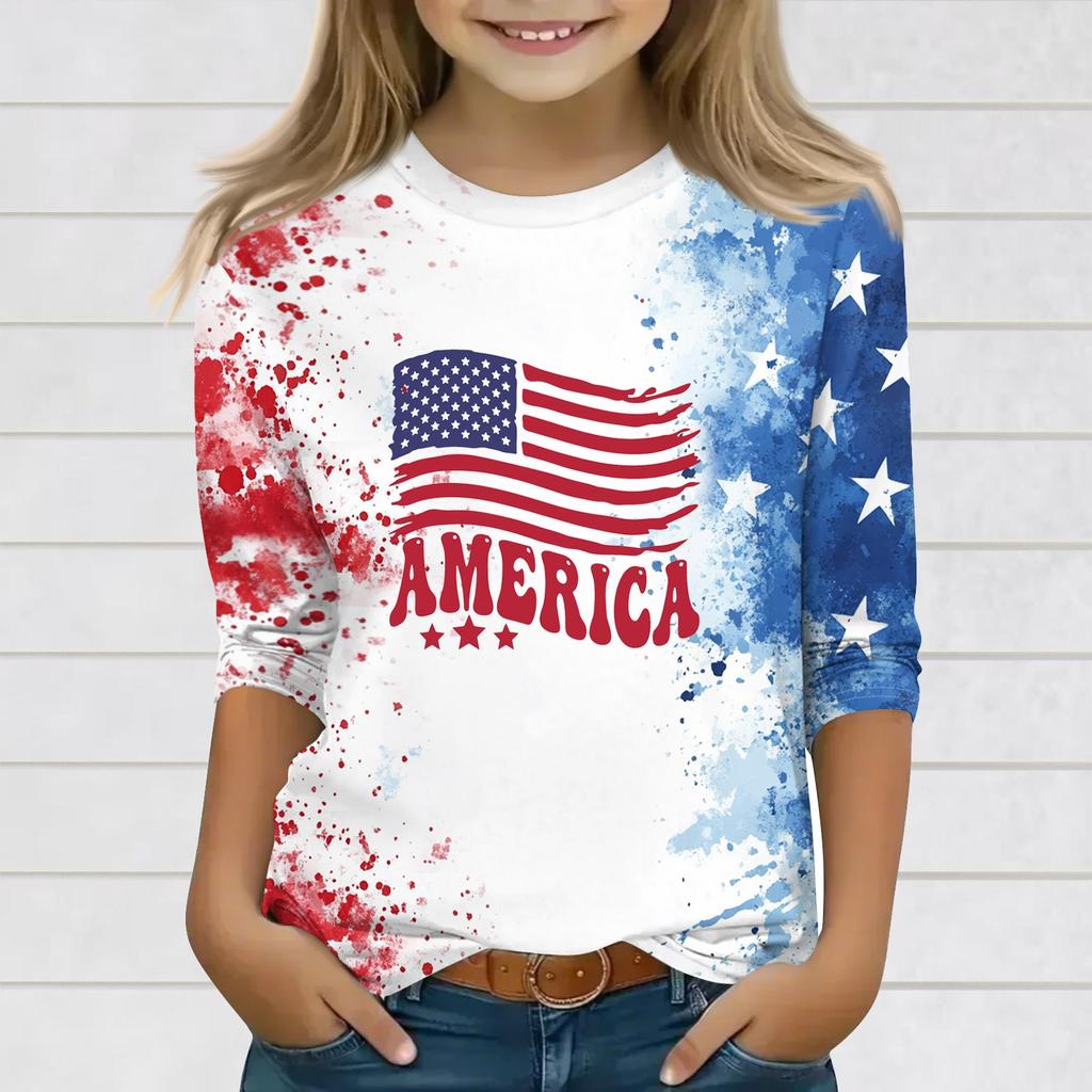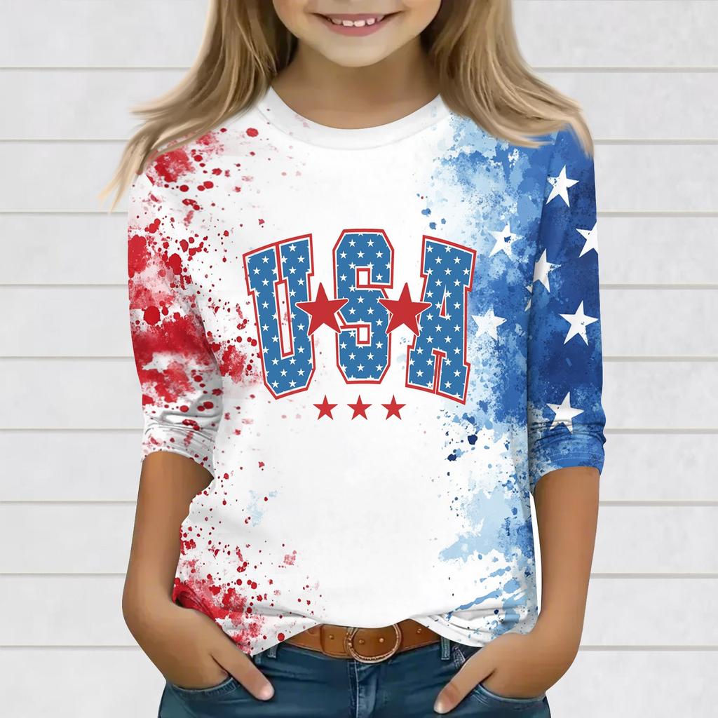 Принтованные топы для девочек-подростков, футболки с круглым вырезом и рукавами 3/4, модные топы для наряда